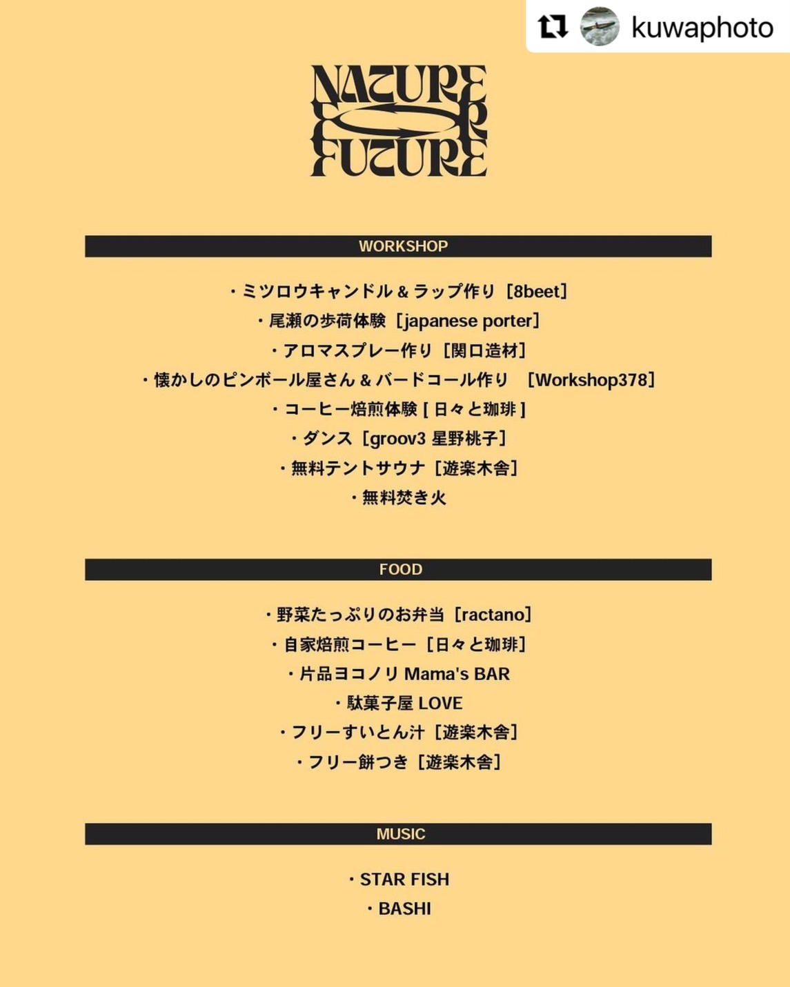 「NATURE FOR FUTURE=今ある自然を次世代や子ども達に残していく」をテーマに開催されます。