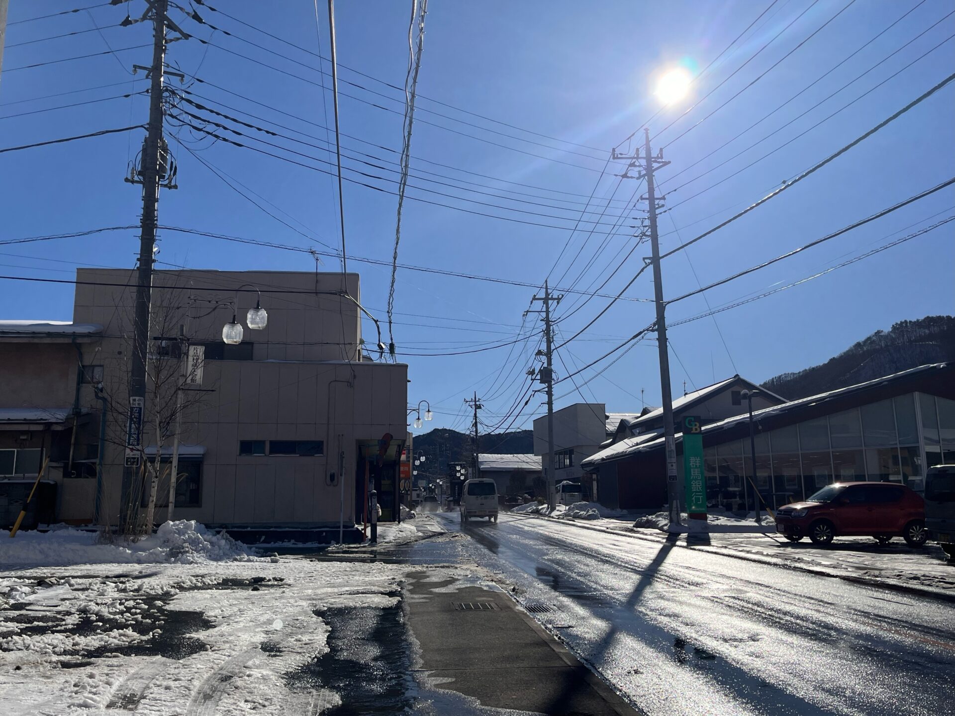 国道・村道ともに、朝晩や日陰には積雪や凍結の恐れがありますので、ご注意ください。