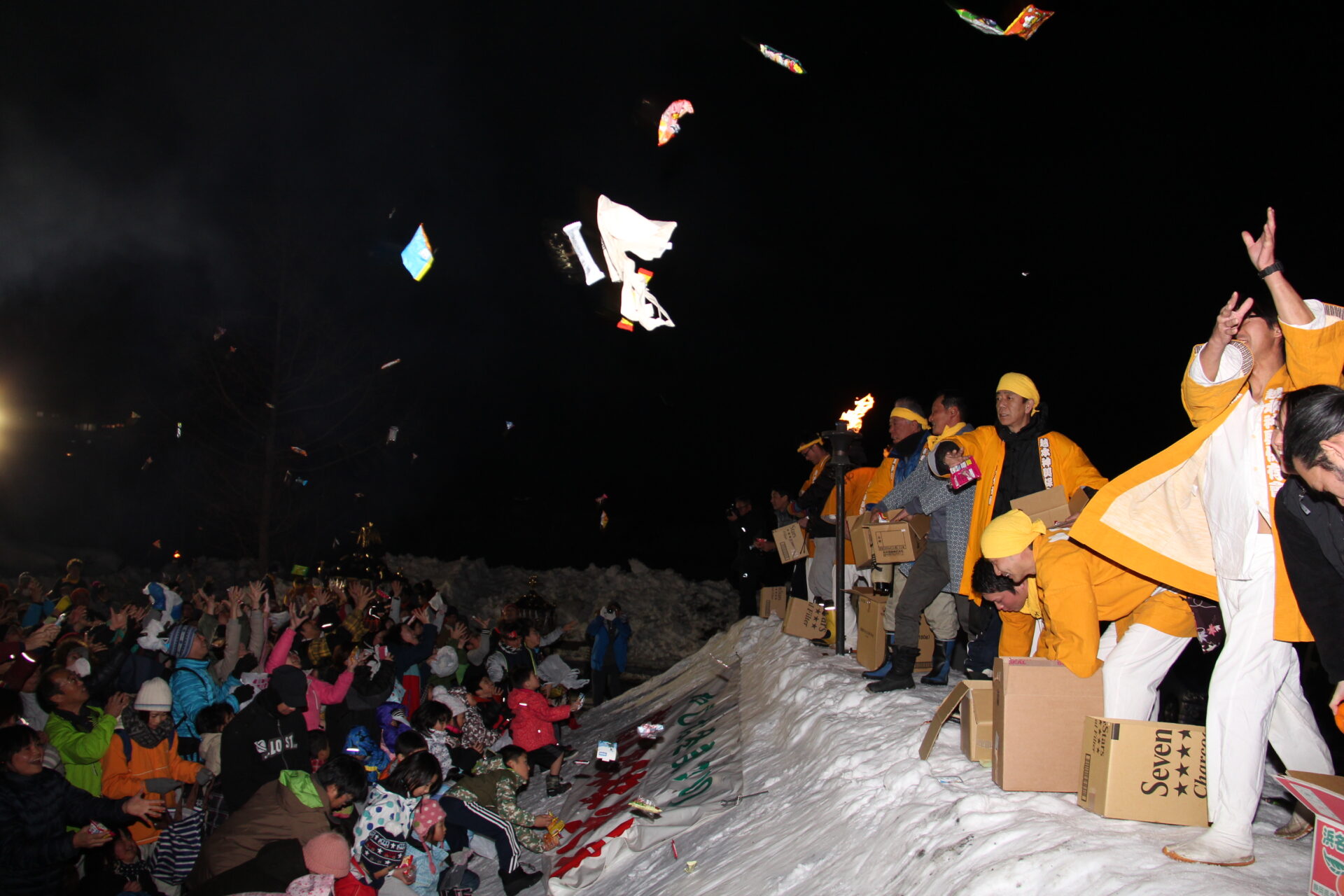 今年は、2月3日(土)の18:30から、片品村越本「中里広場(なかさとひろば)」にて開催されます。なかなか体験出来ない雪の上で御神輿を担ぎ、地元尾瀬太鼓の演奏をはじめ、無病息災などの願いが込められた豆まきが行われるほか、地元キッチンカーの出店もあります。