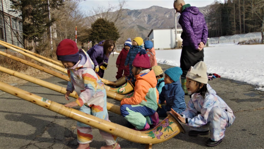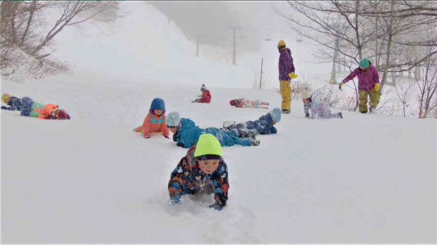 雪の中を駆け回り、すくすと育つ子どもたち。