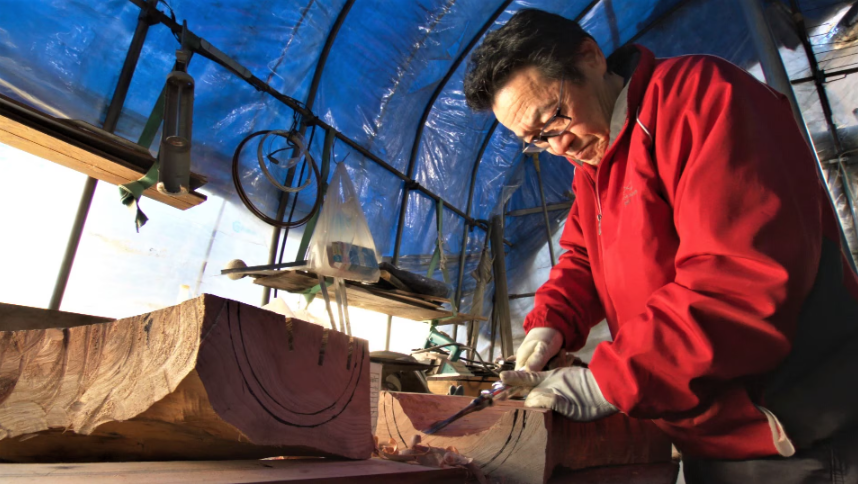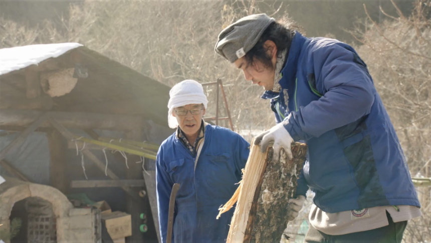 農閑期の仕事として行われてきた炭焼きを守る職人と弟子。