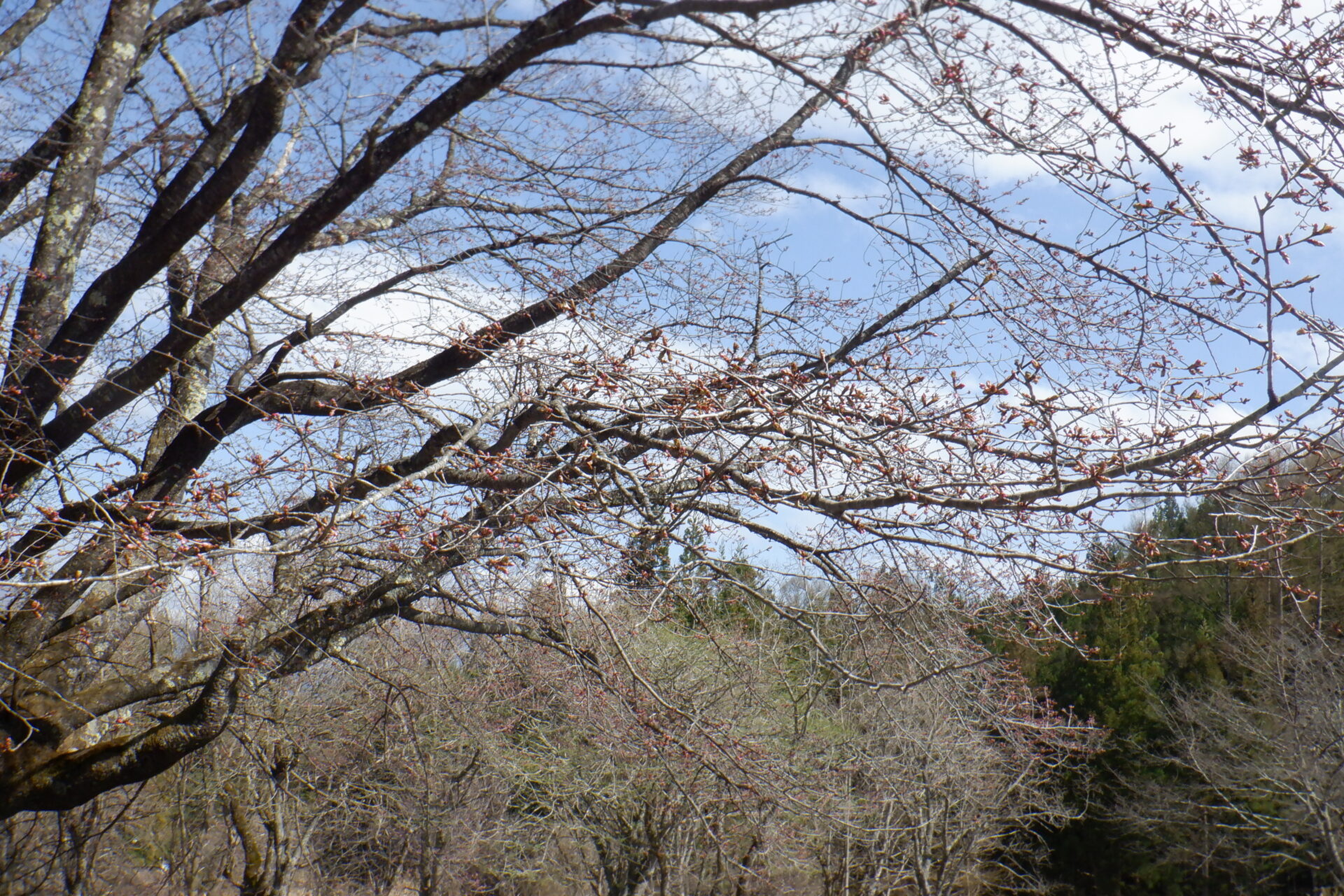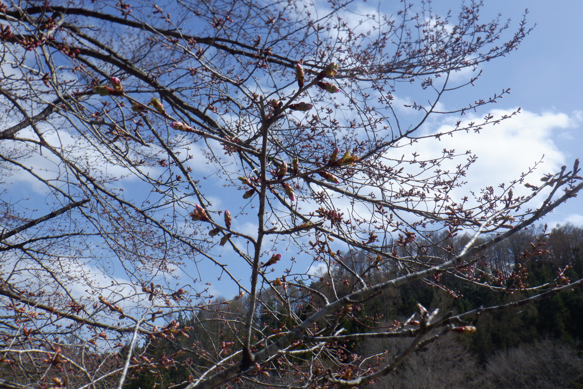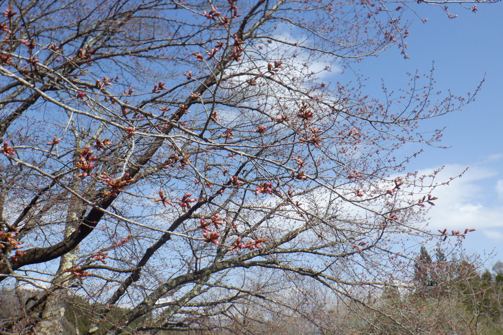 針山の天王桜は、全体的に蕾の色づきが増しています。
