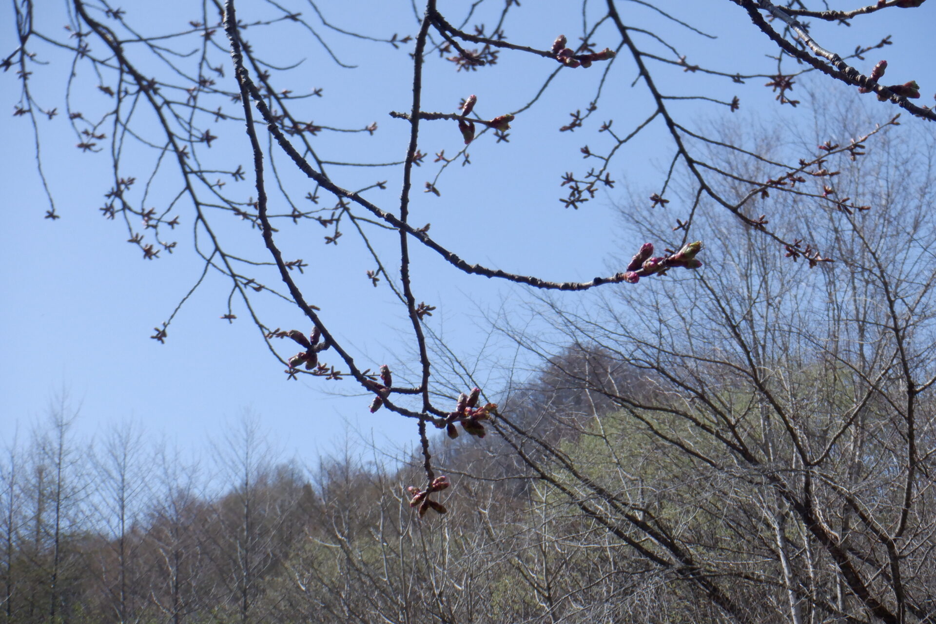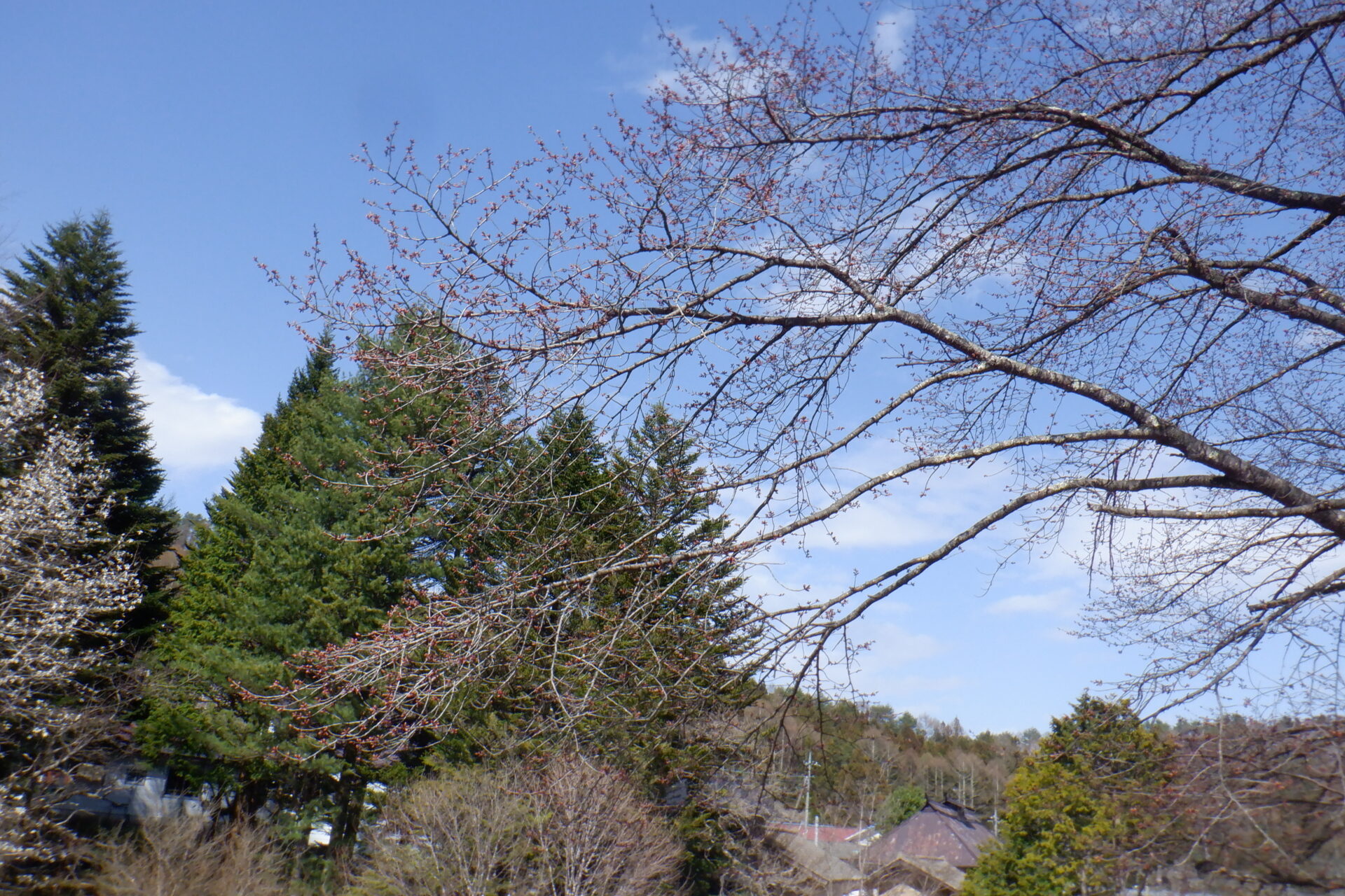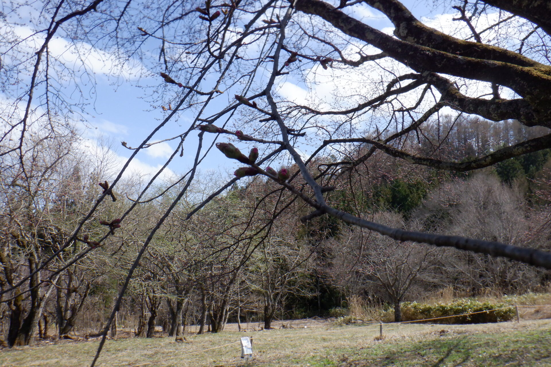 針山の天王桜は、全体的に蕾の色づきが増しています。
