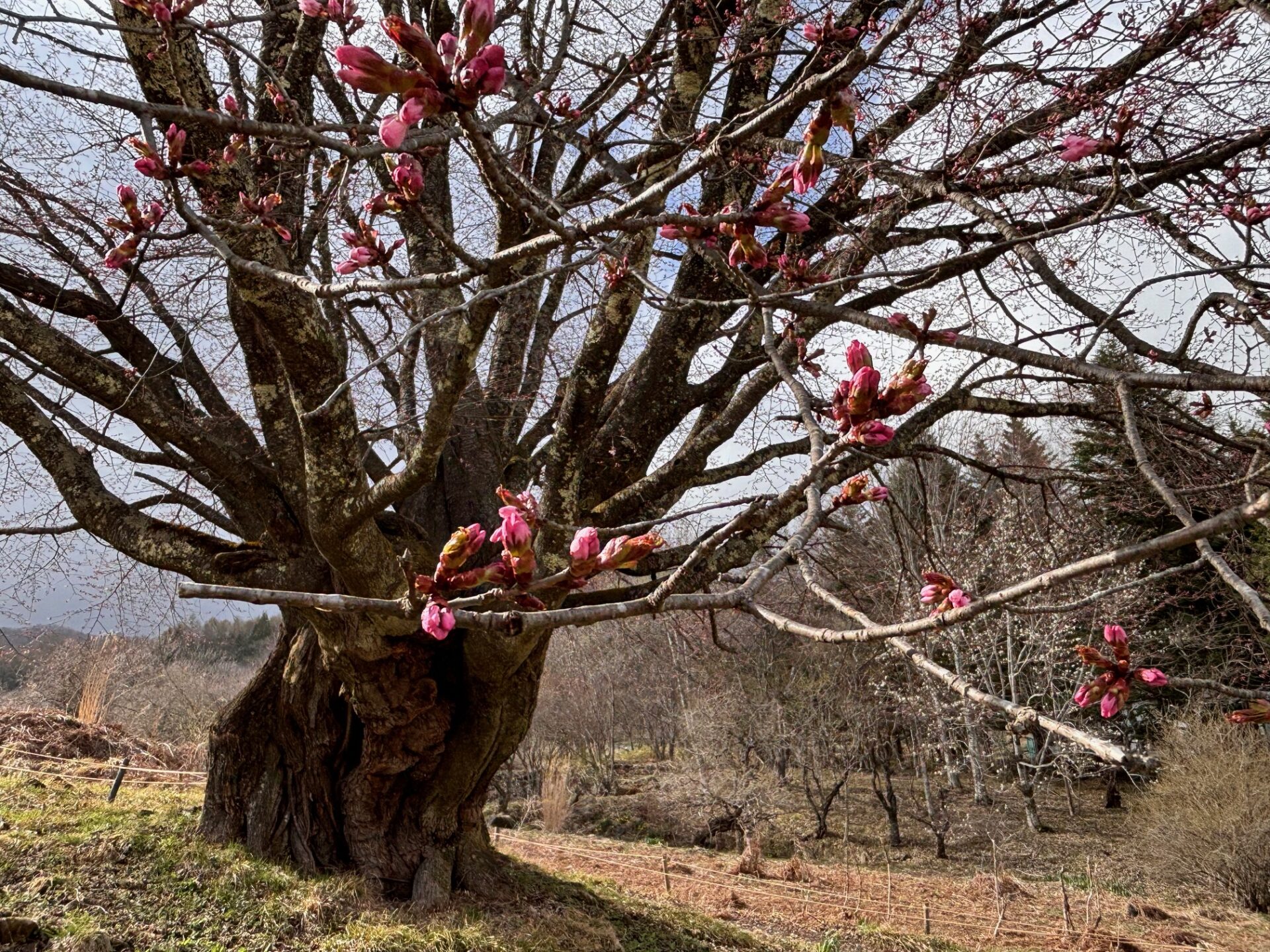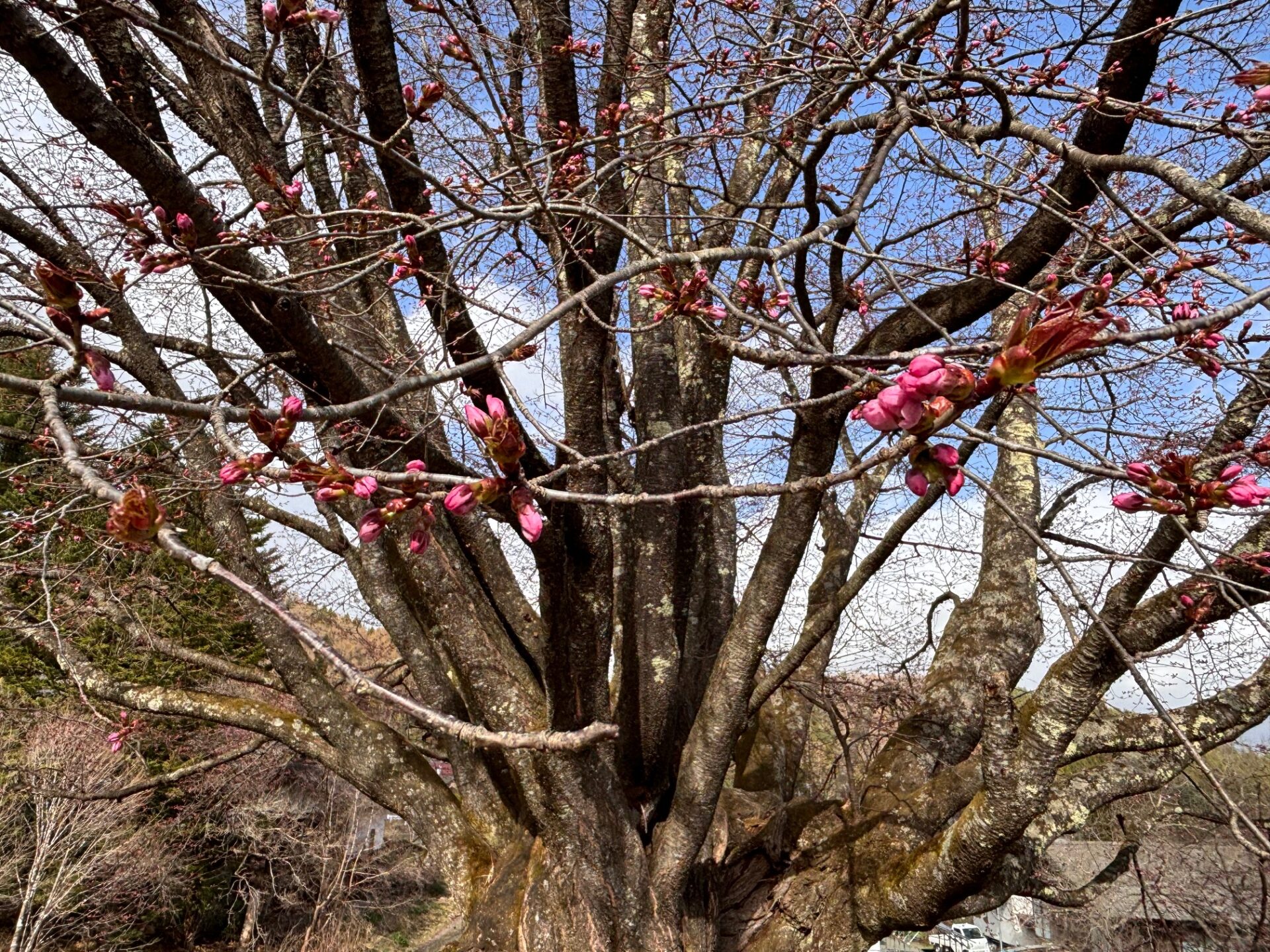 針山の天王桜は昨日より開花数が増え、数十輪開花していました。