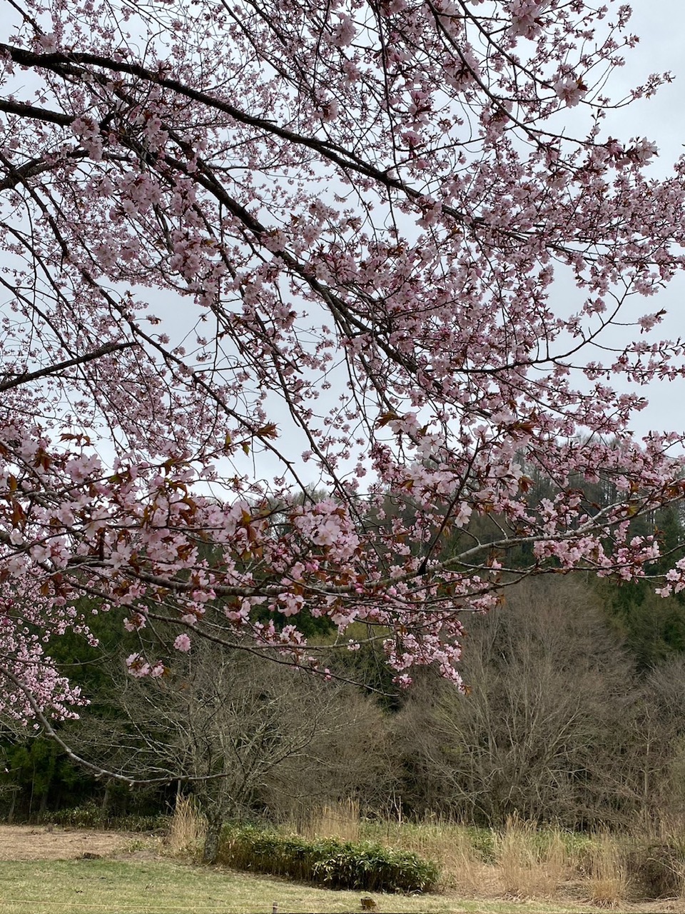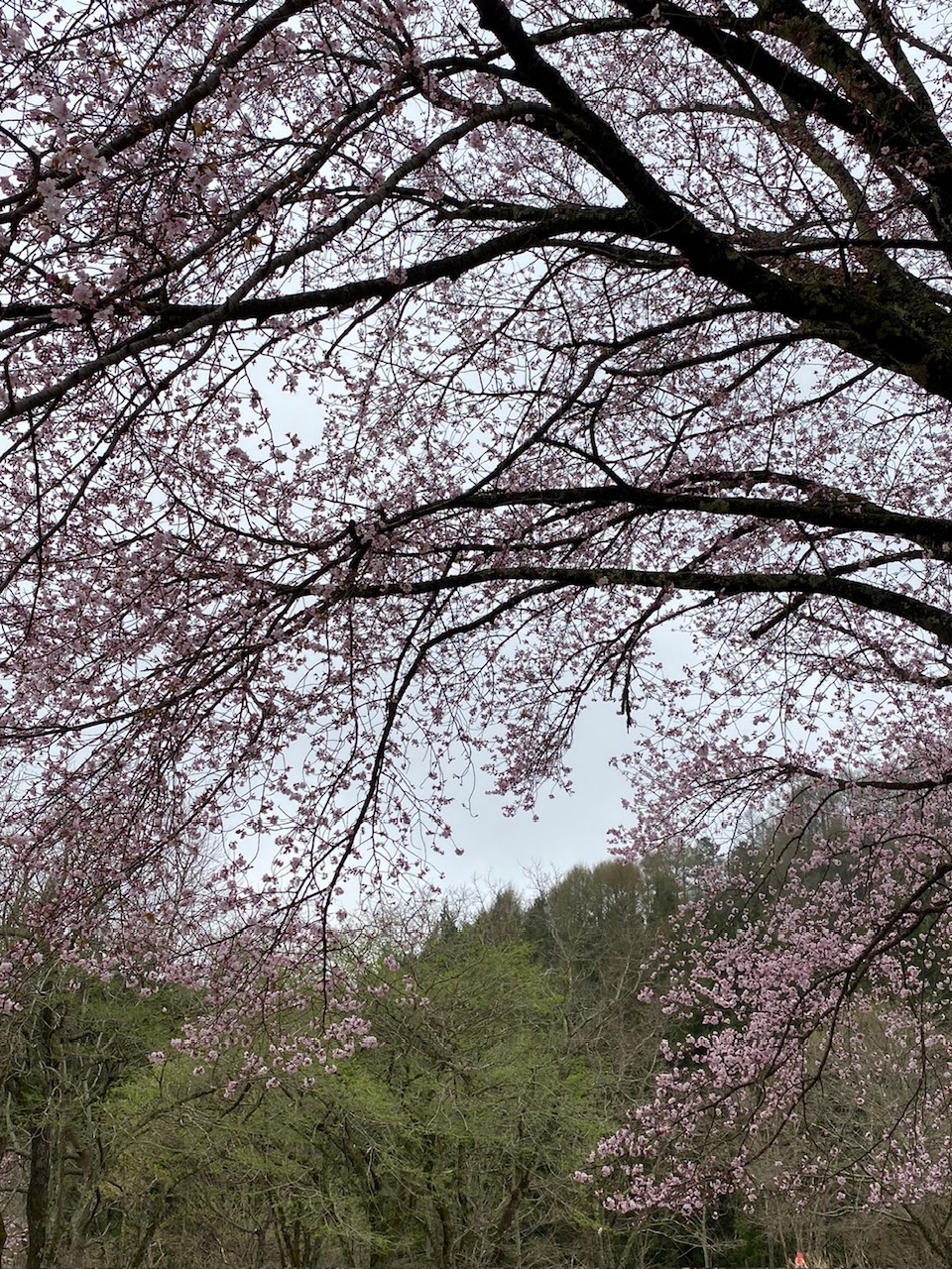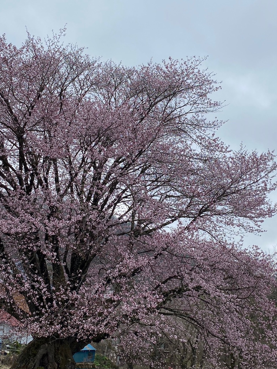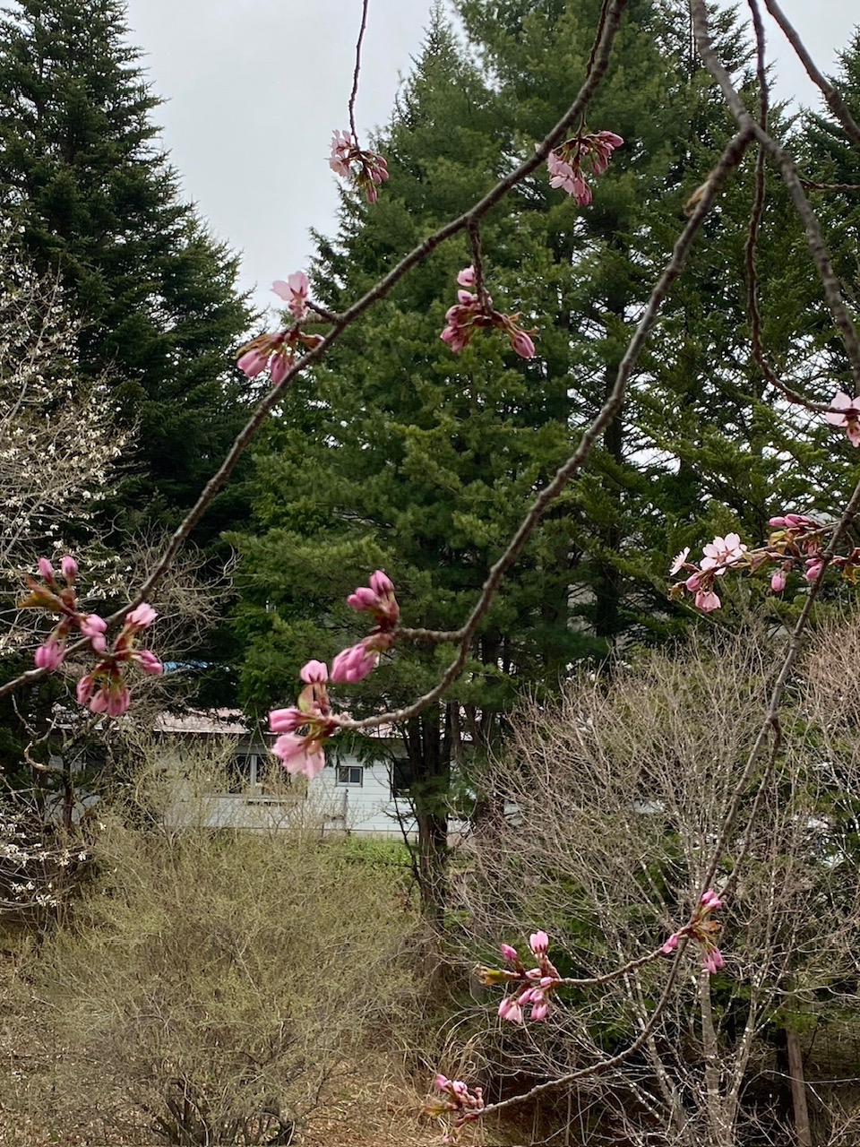 今日は朝降っていた雨は止み、1日すっきりしない曇り空ですが、針山の天王桜は8分咲き程度で見頃になってきました。北側に少し蕾が見られますが、咲きそろってくると満開を迎えそうです。