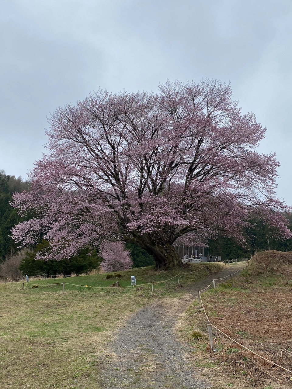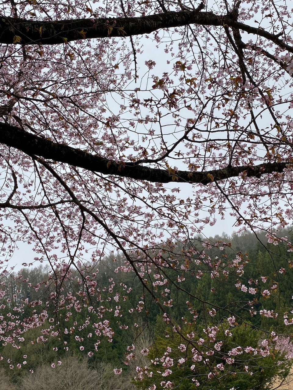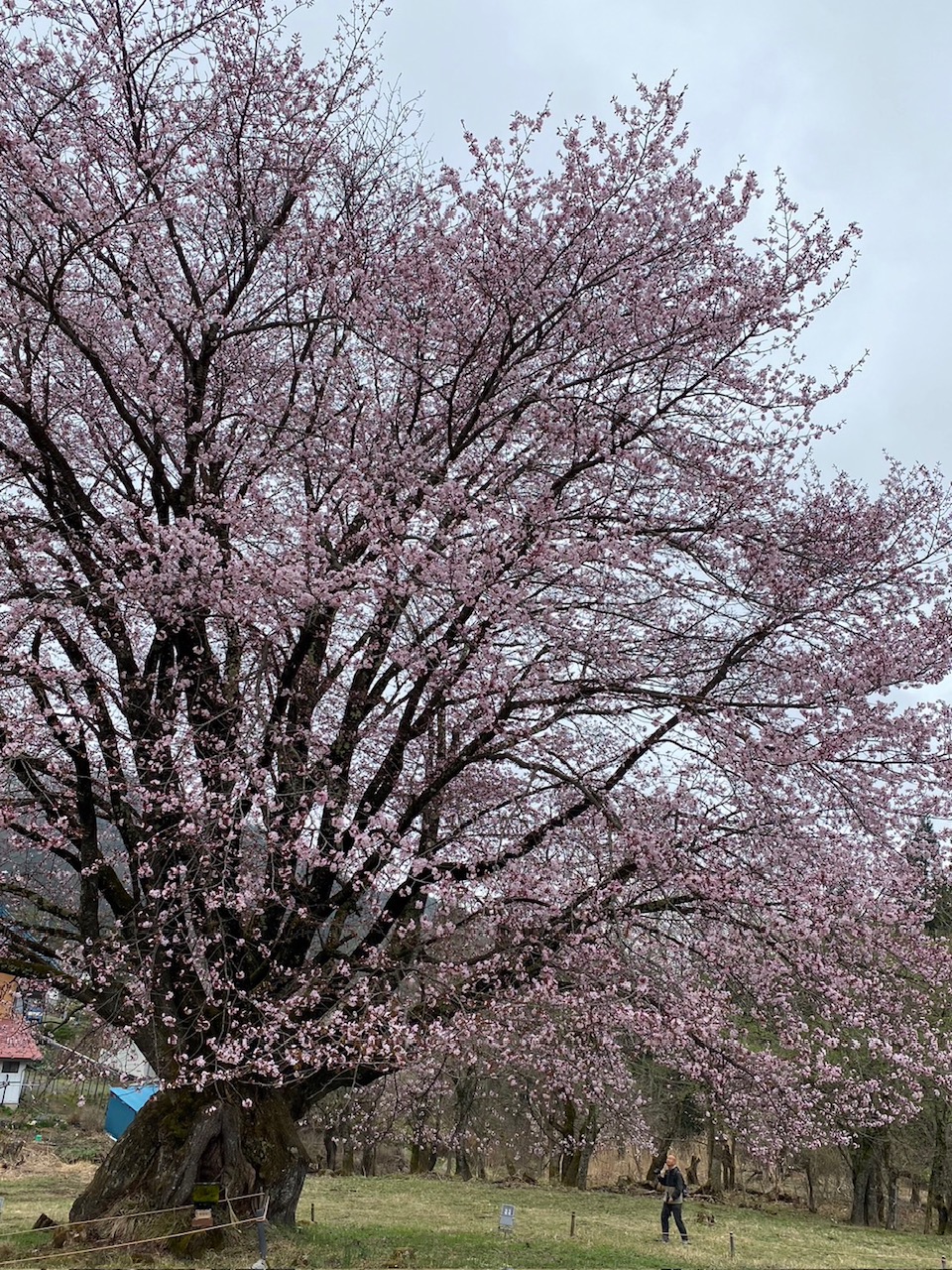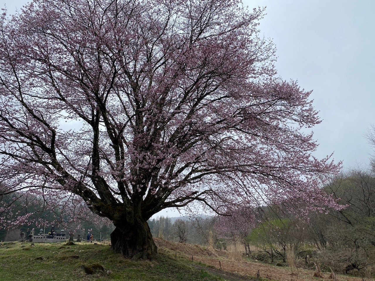 今日は朝降っていた雨は止み、1日すっきりしない曇り空ですが、針山の天王桜は8分咲き程度で見頃になってきました。北側に少し蕾が見られますが、咲きそろってくると満開を迎えそうです。