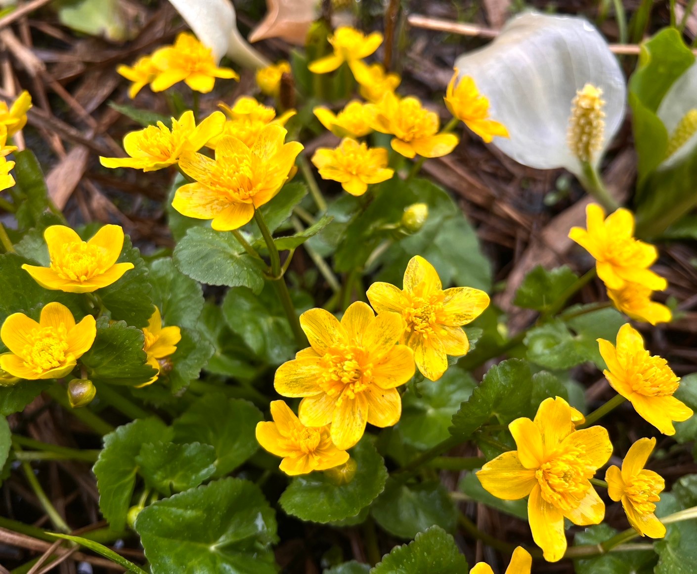 下の大堀のビュースポットではミズバショウの群生がご覧いただけます。