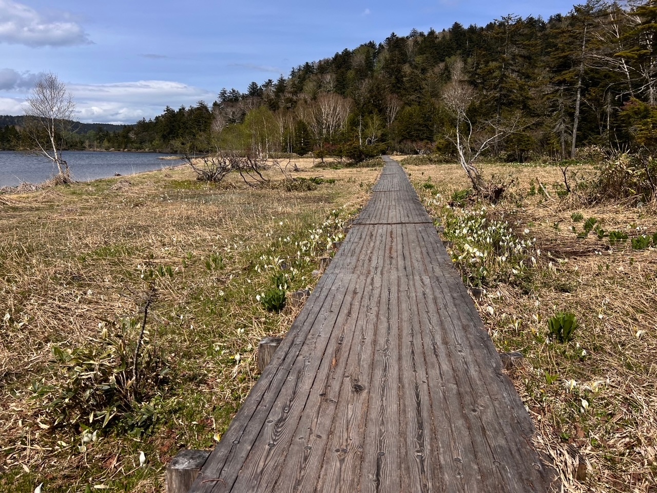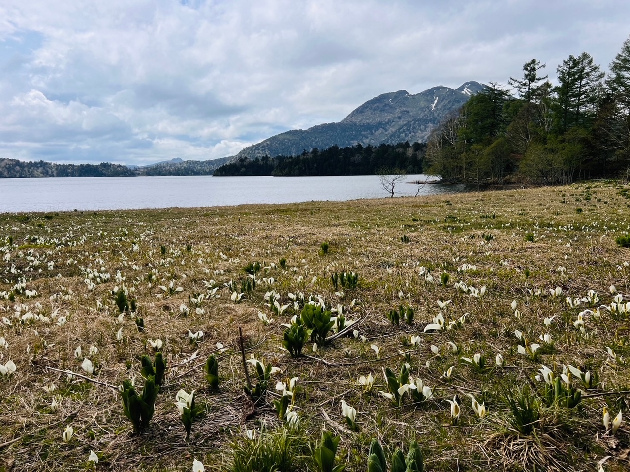 尾瀬沼周辺のミズバショウはまだまだ頑張って咲いています。