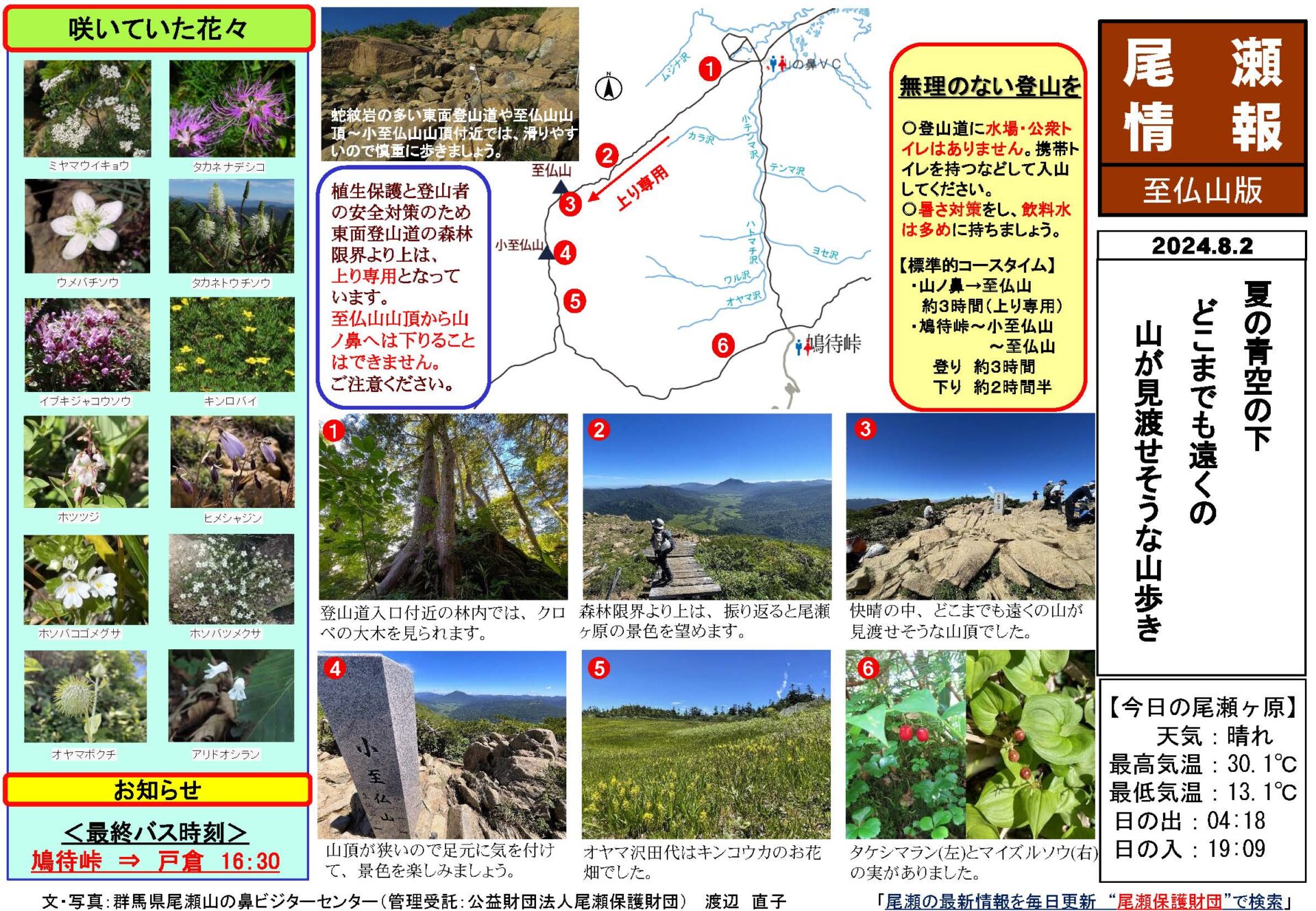 ※植生保護と登山者の安全対策のため東面登山道の森林限界より上は、上り専用となっています。至仏山山頂から山ノ鼻へは下りることは出来ませんので、ご注意ください。