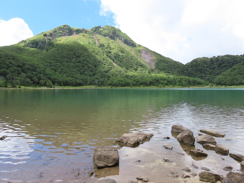 【五色沼越しの山頂】
