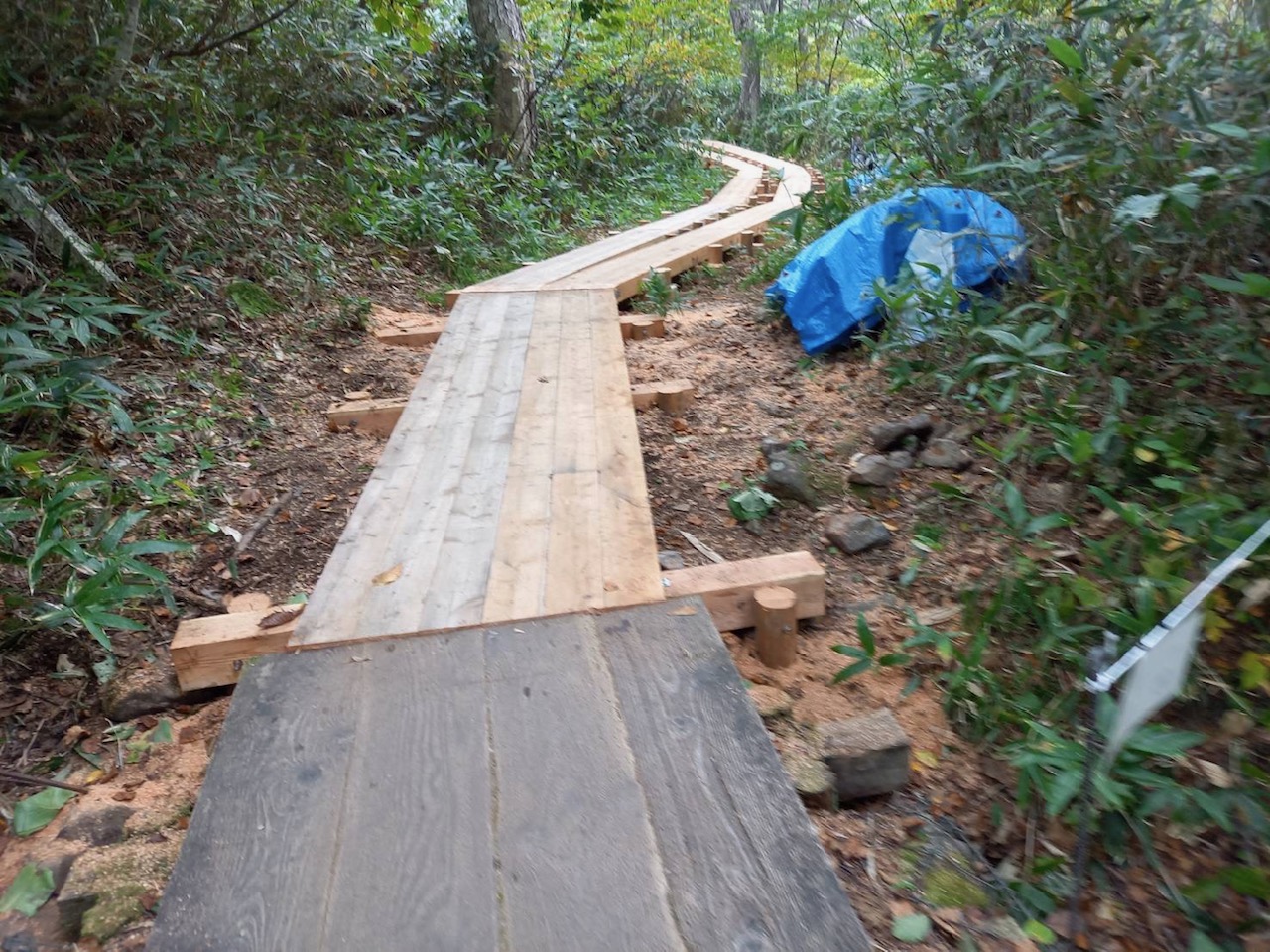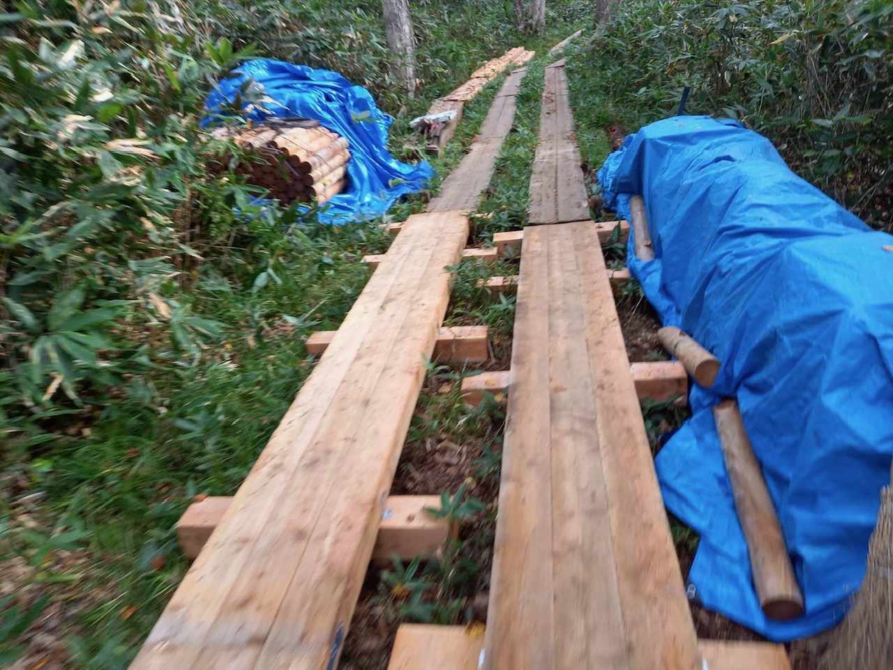 テンマ沢橋の鳩待峠寄りでは、木道の架け替え工事が始まっています。