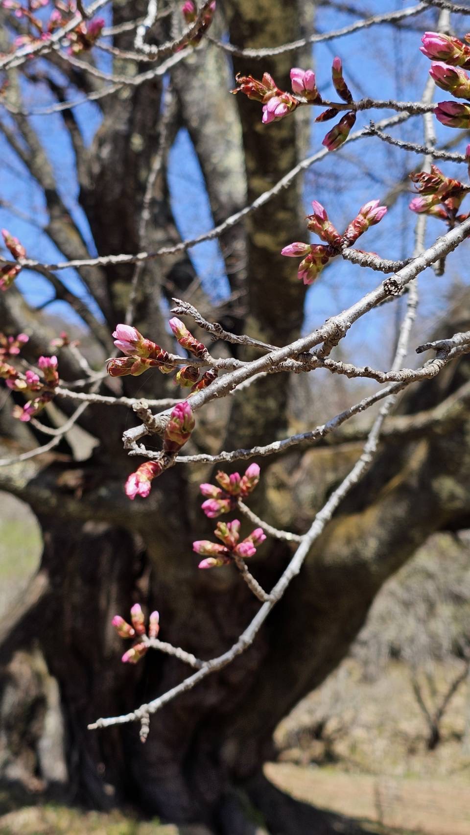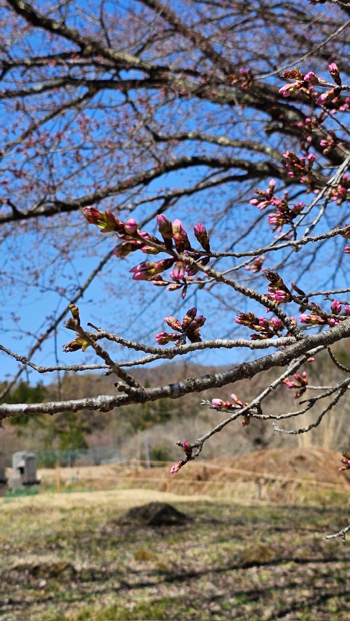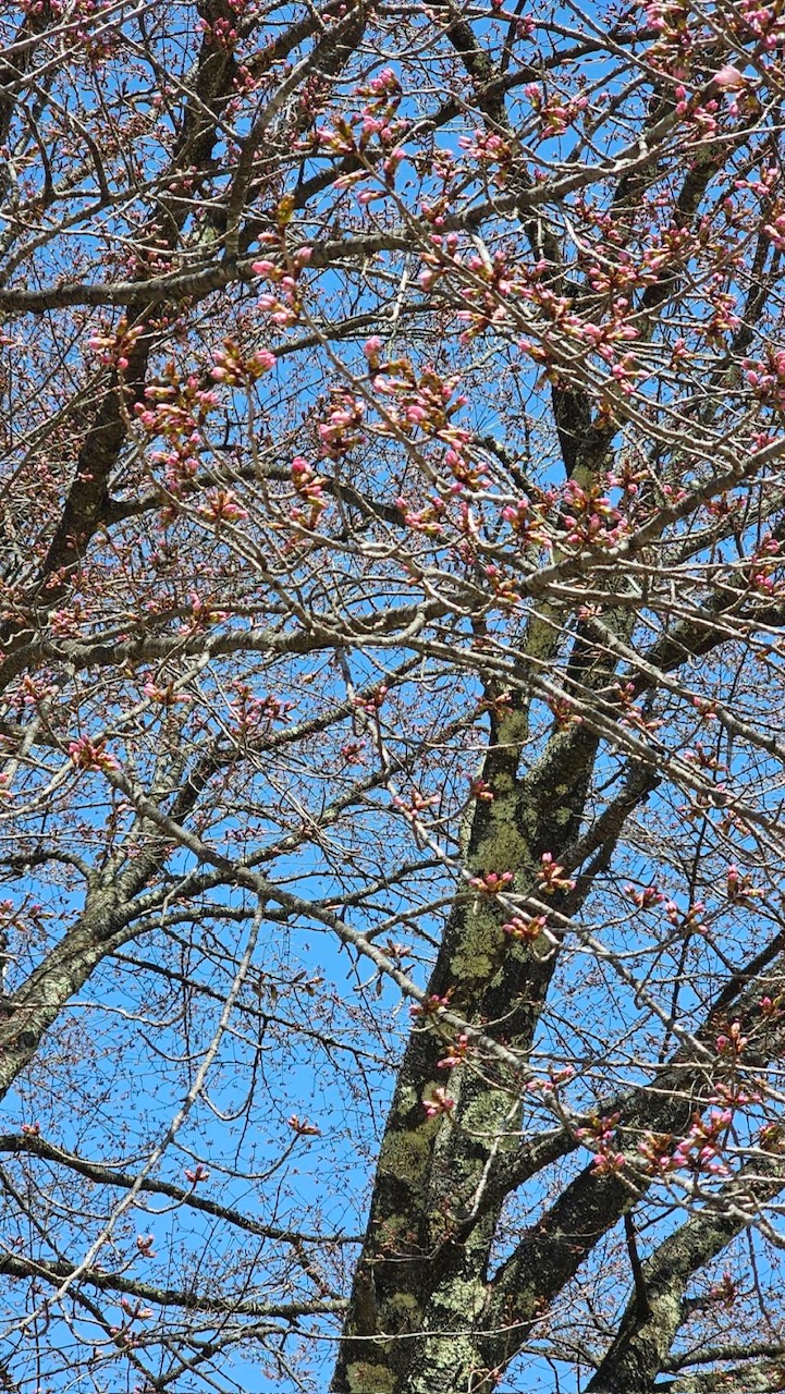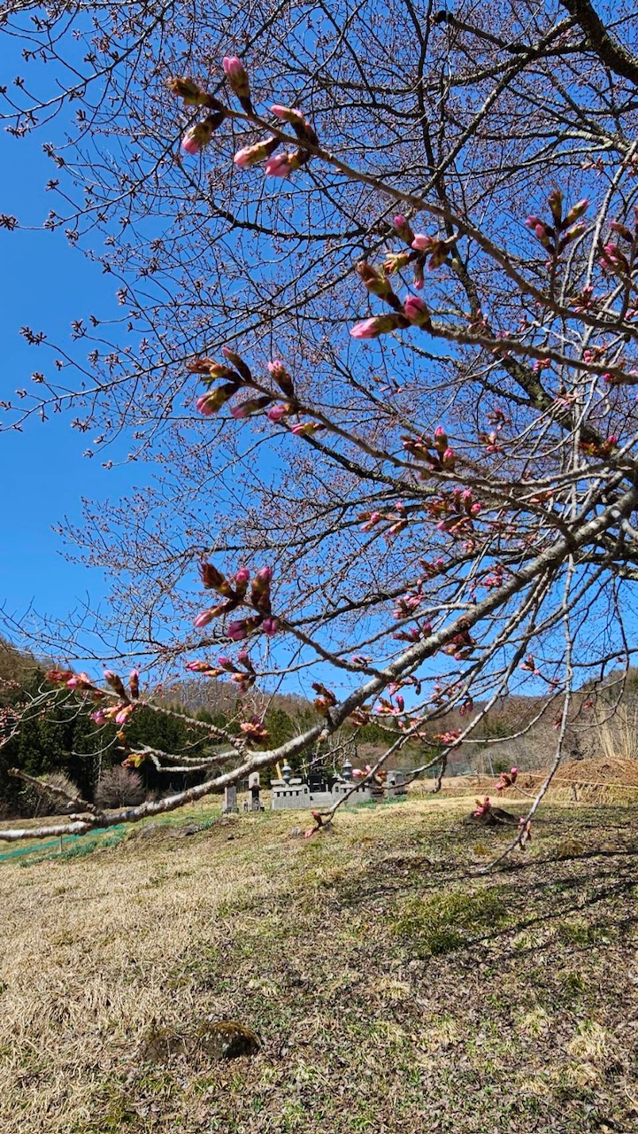 針山の天王桜も急に膨らみが増し、今日も1日暖かい予報が出ていますので、開花しそうな蕾が数輪あります。