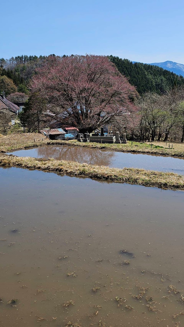 週末、気温が高く暖かい日が続いたため、村内の桜が一気に開花しました。