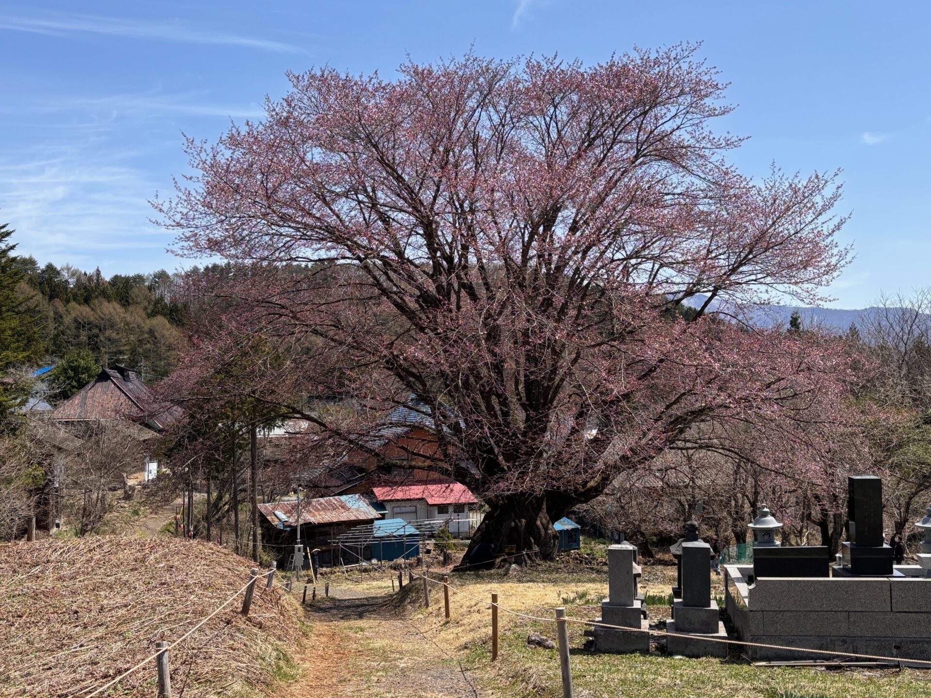 針山の天王桜が数十輪開花しました!