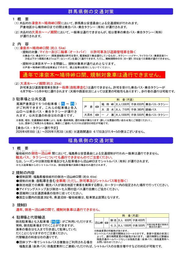 2026年 尾瀬国立公園の交通対策のお知らせ ←こちらをクリックしてください
