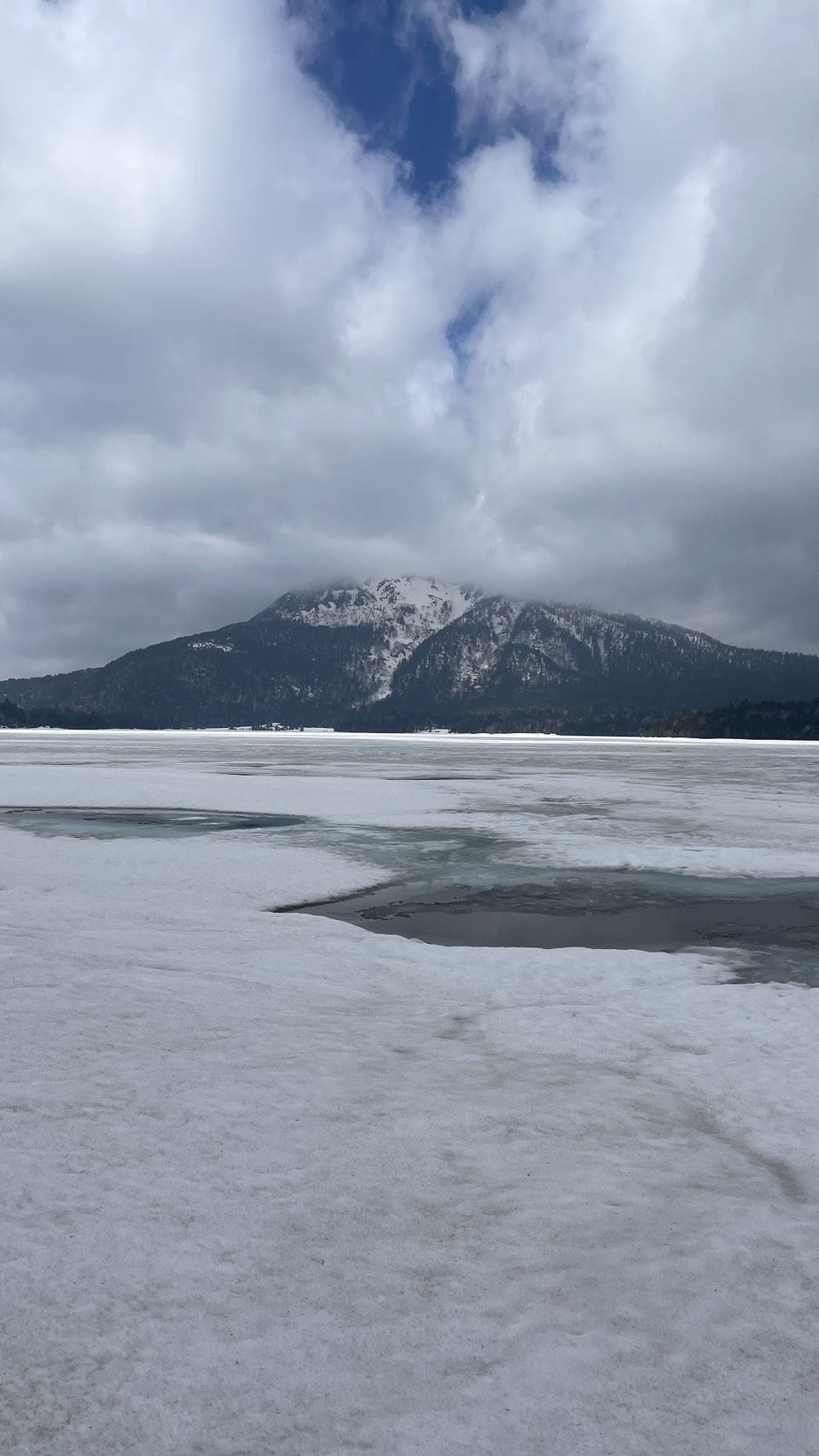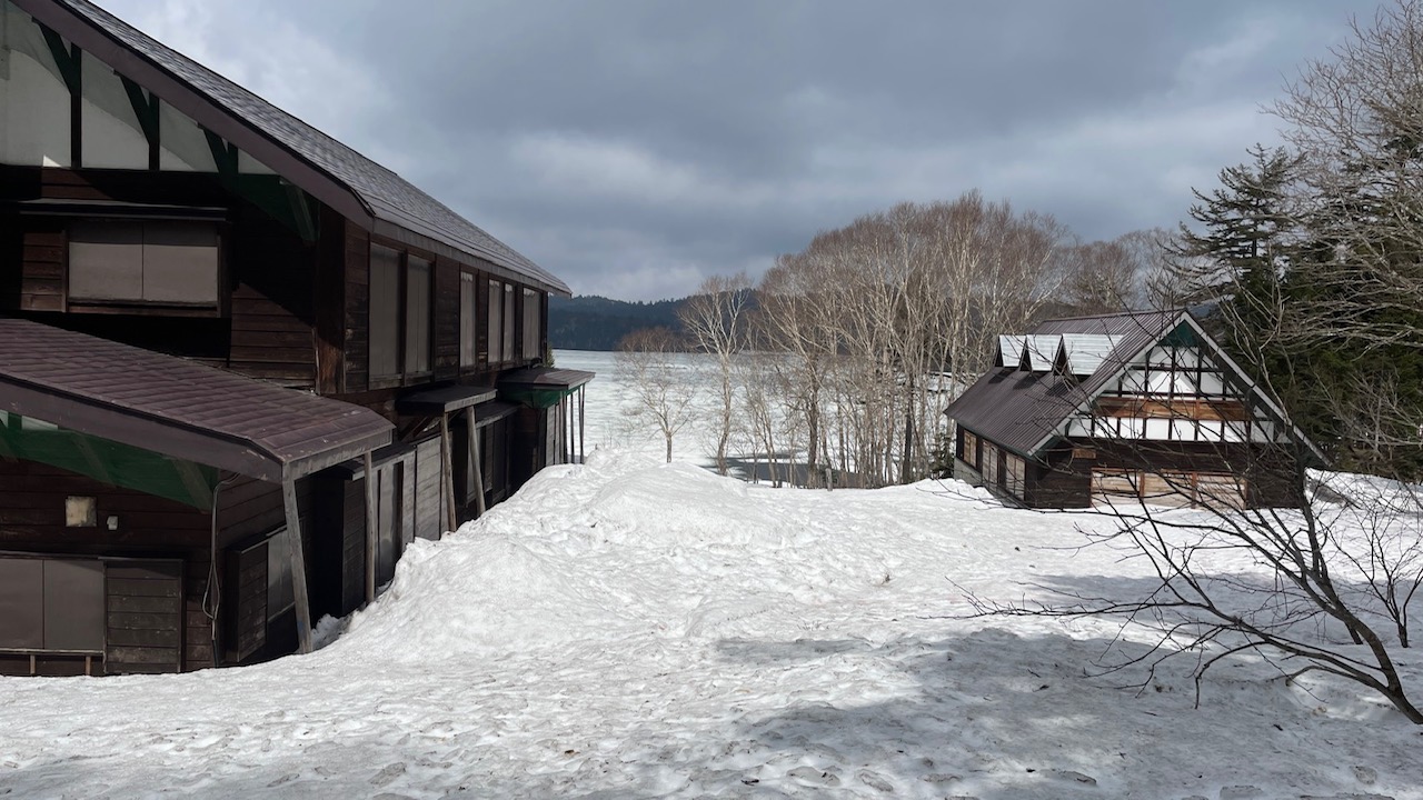 尾瀬沼の沼の氷が薄く、湖面の氷の上を歩くことはできません。