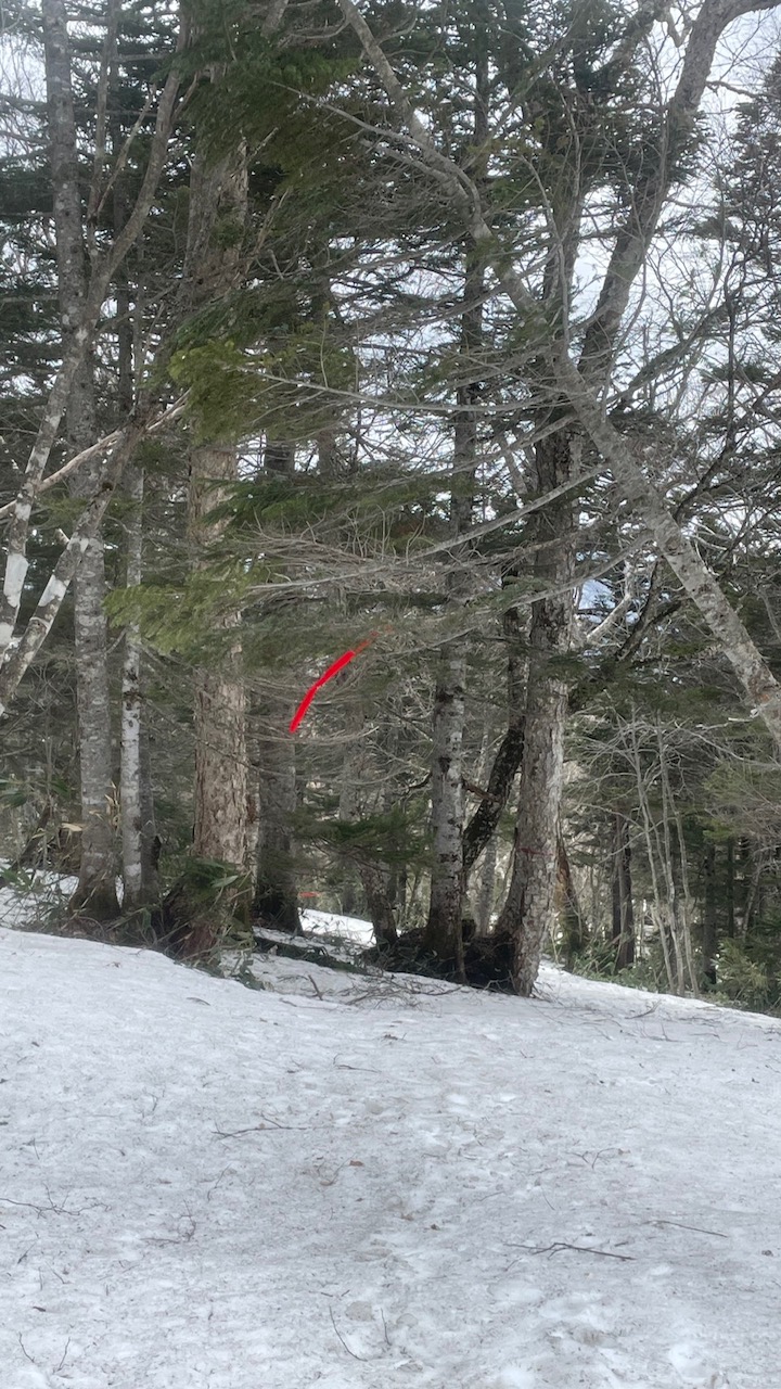 鳩待峠から山ノ鼻方面はまだまだ冬道でトレースもなく、リボンつけもまだ行われていません。