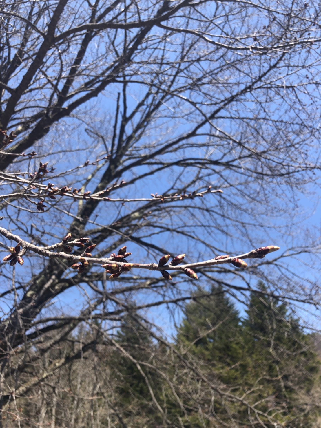 天王桜の蕾も先日に比べて(4月15日)少し膨らんだかな・・・といったところです。
