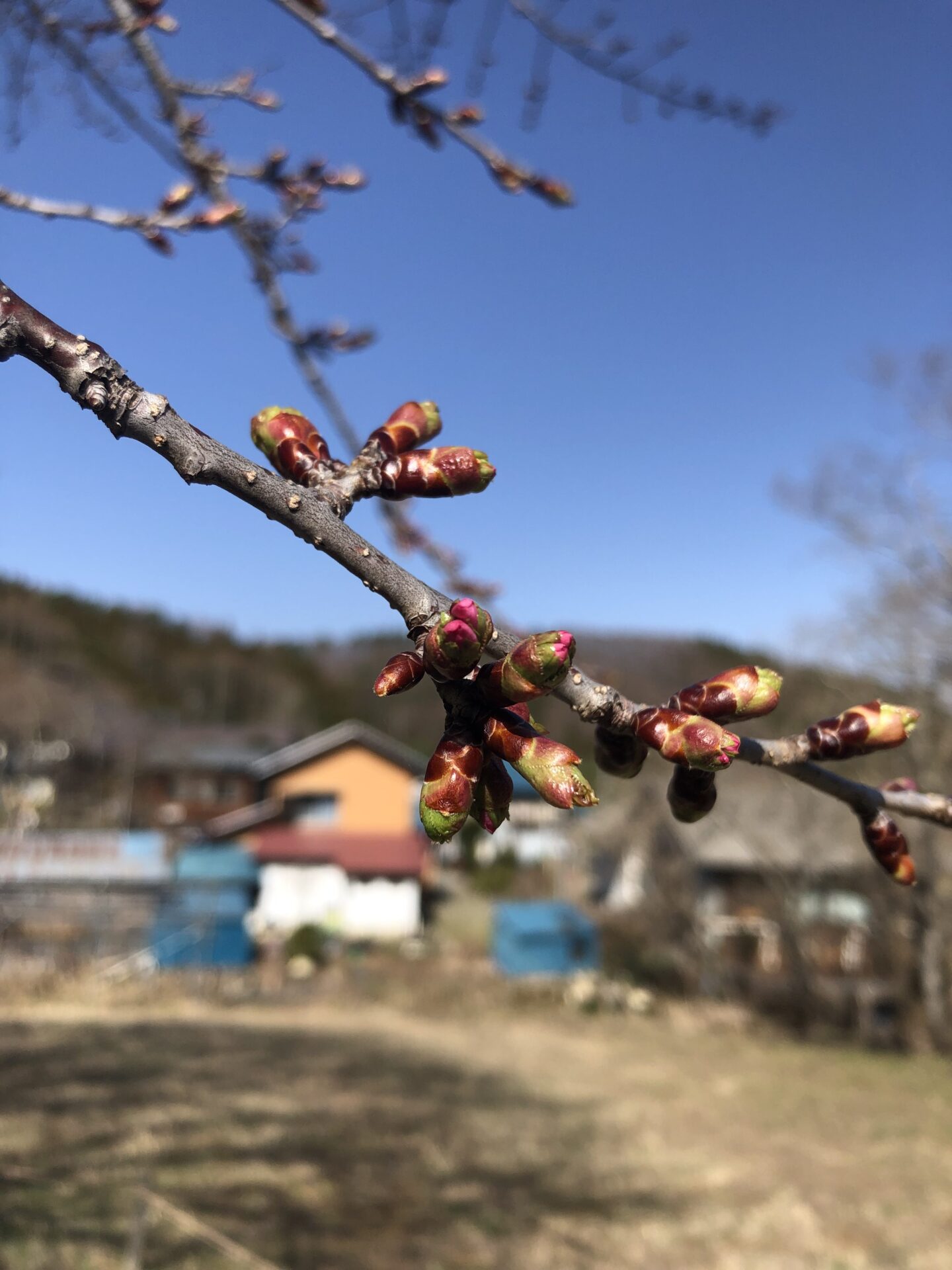 今日は1日ポカポカ陽気だったので、天王桜の蕾が色づき始めました♪