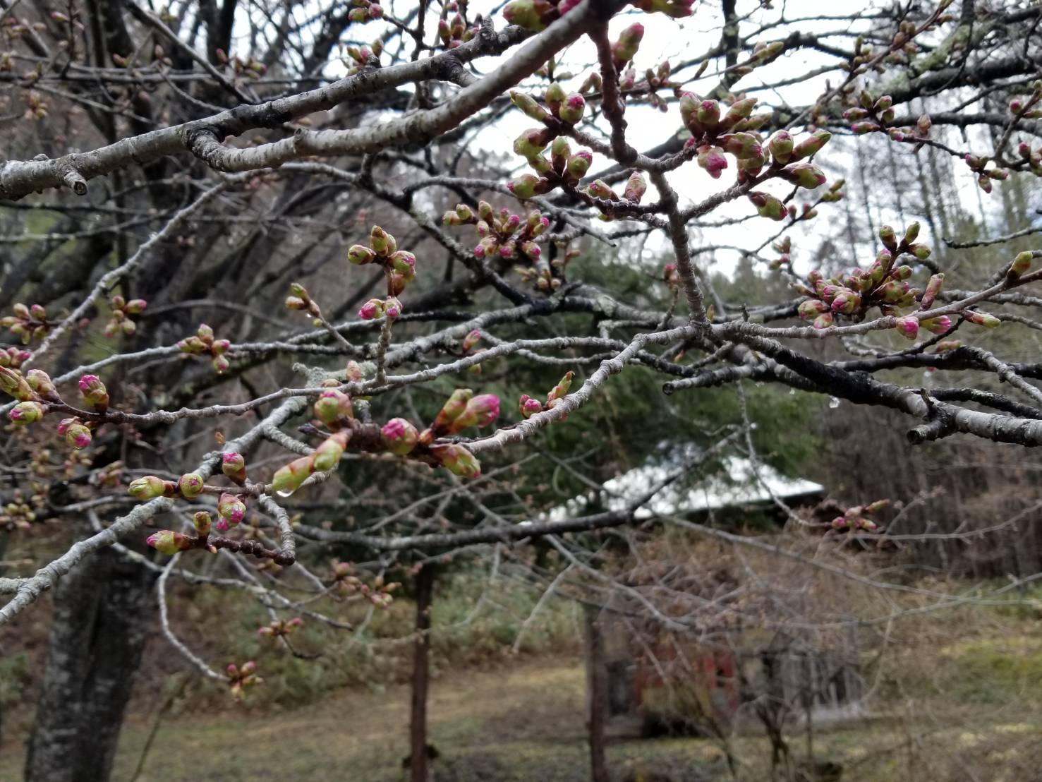 また、もうひとつの『オキノ桜』はまだ蕾ですが、先が少しずつ色づき始め、蕾も柔らかくなってきています。オキノ桜ももう少し・・・といったところです。