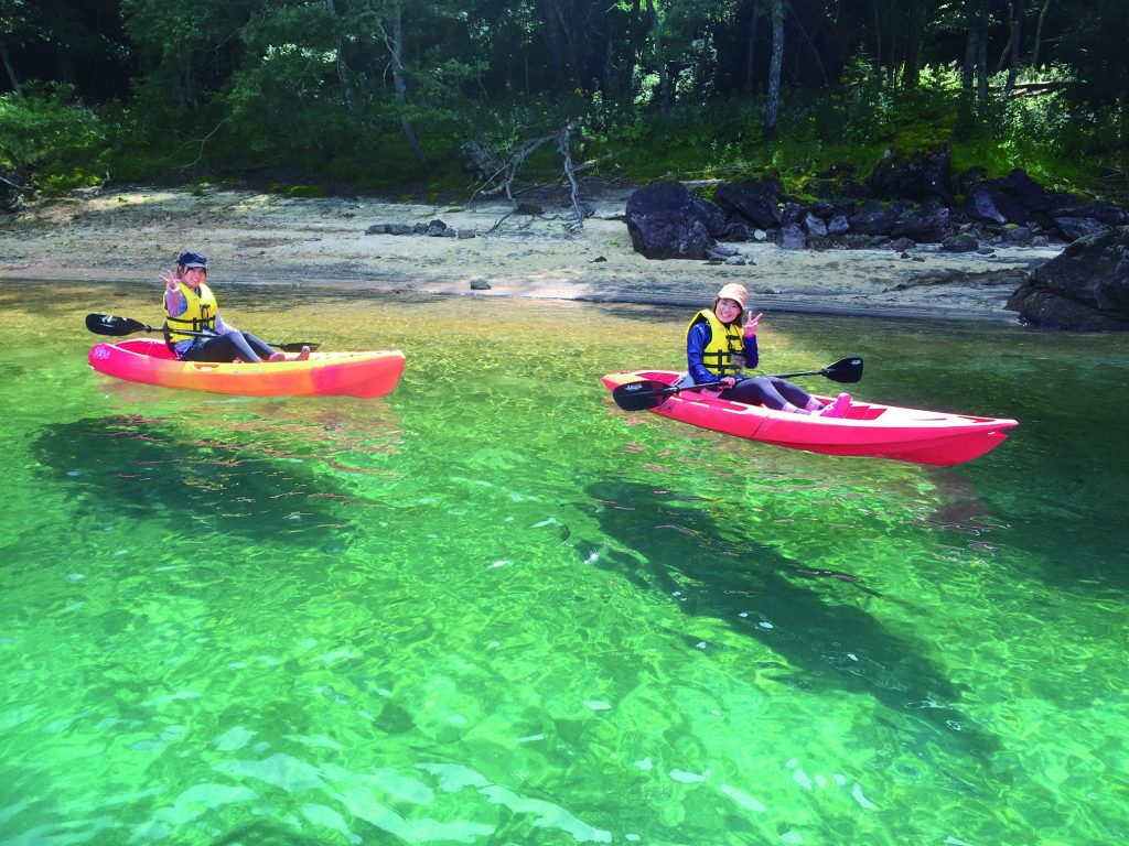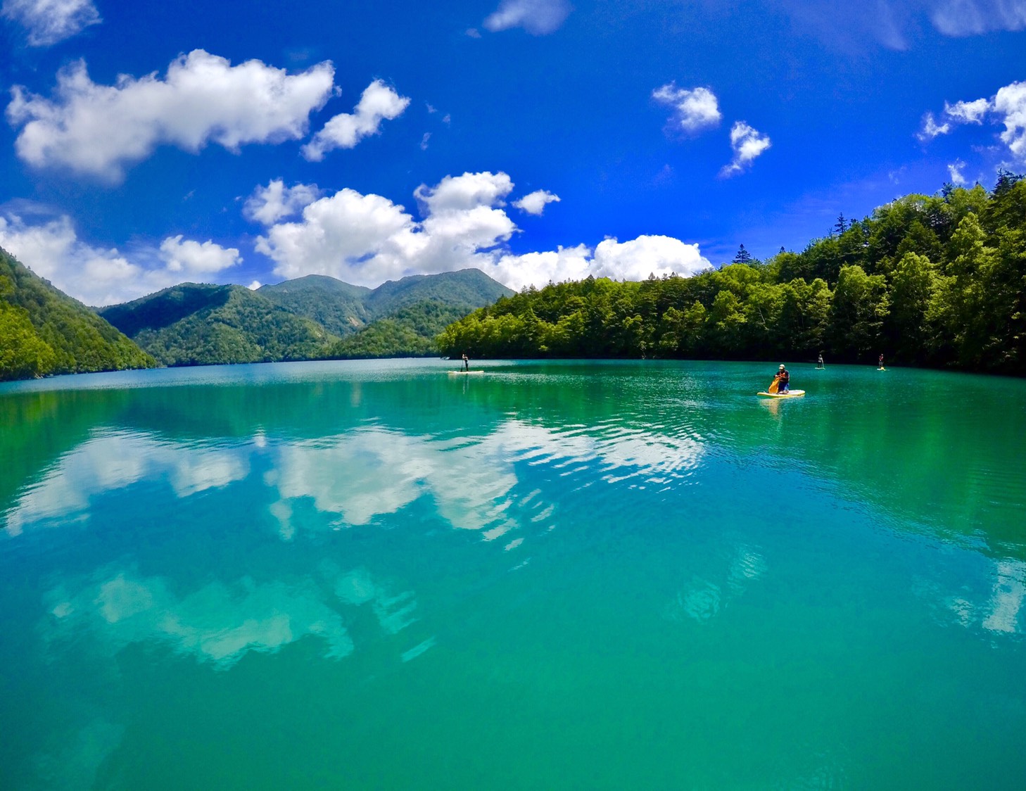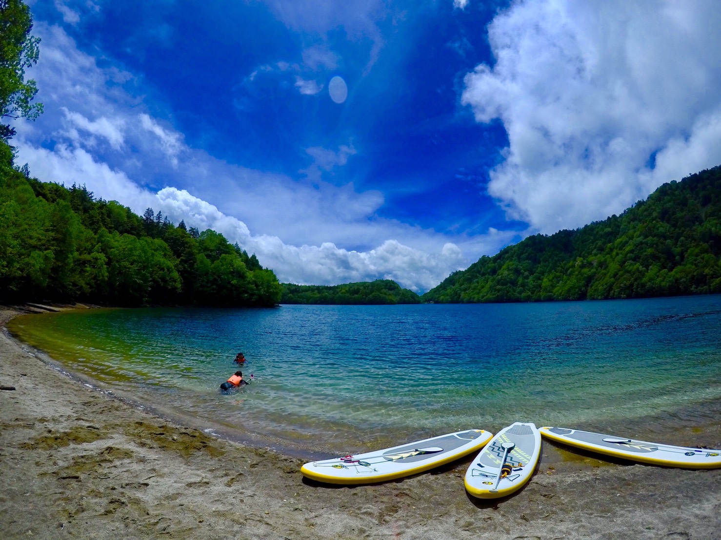 菅沼は山々に囲まれているのでとても静かで、パドルで水をかく音が響く音がとても心地よいです。