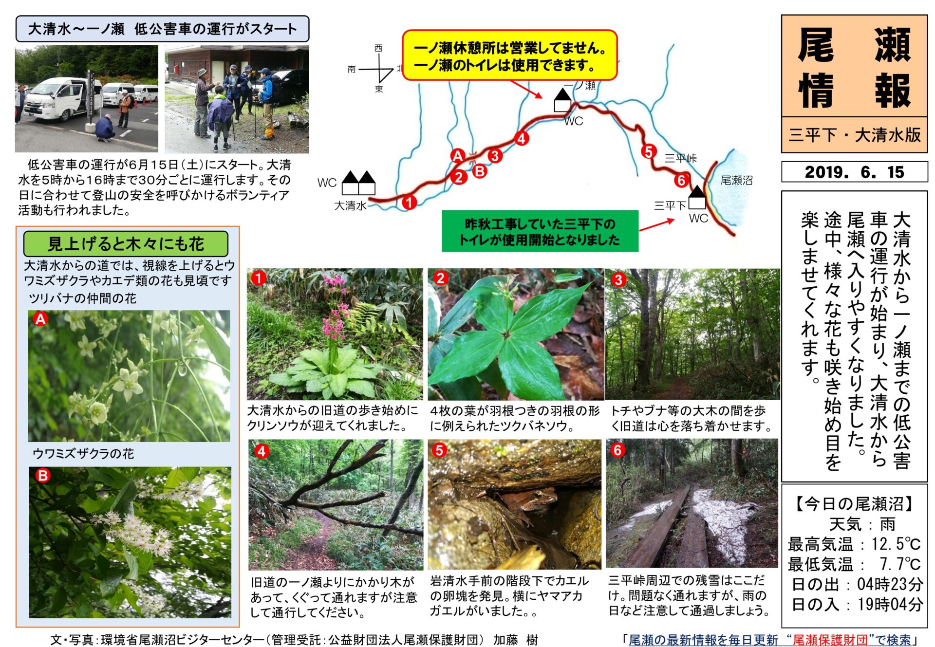 《 6/15現在 尾瀬沼の最高気温 12.5℃ 最低気温:7.7℃ 》