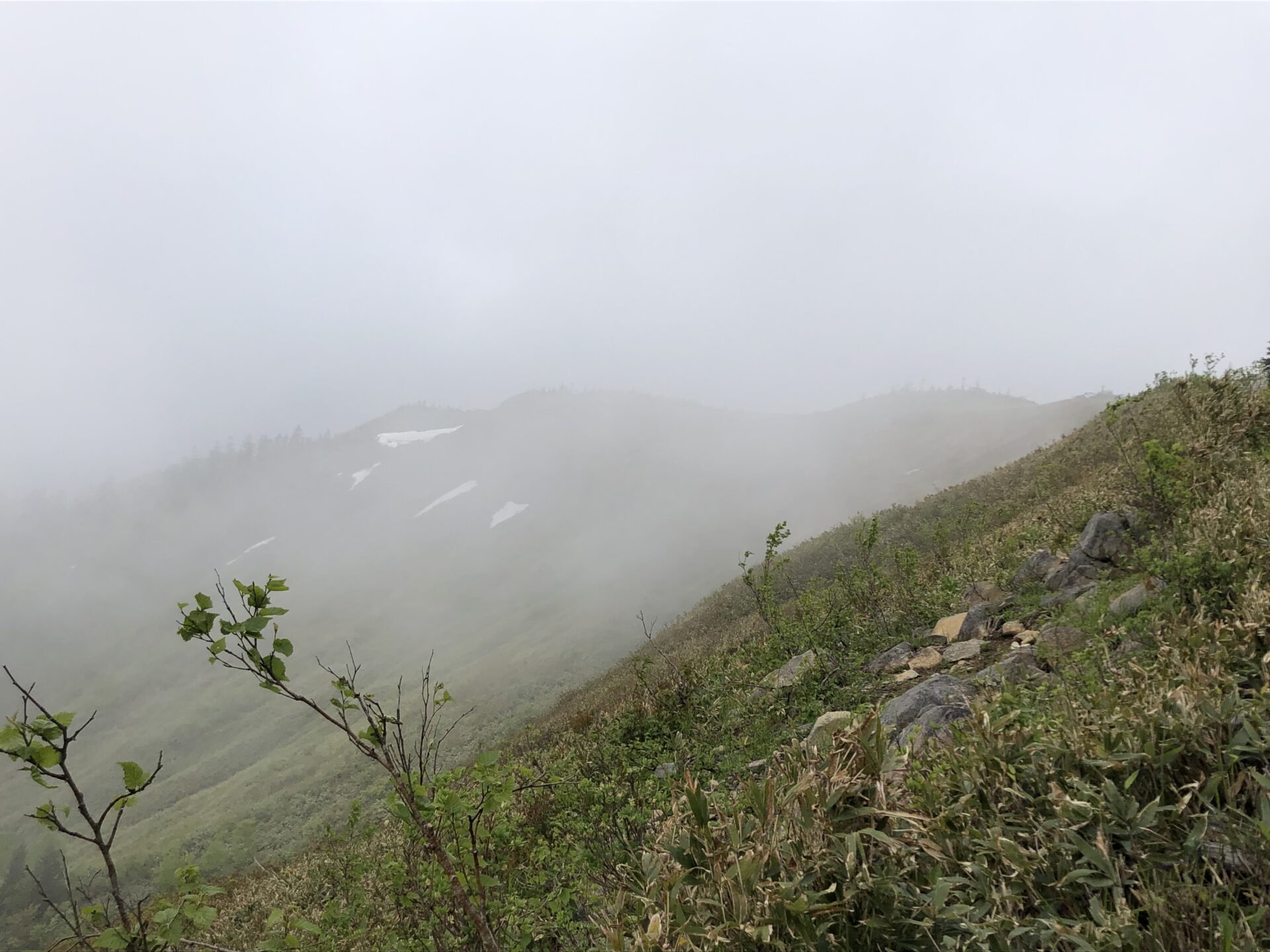 この日は天候が悪く、霧がかっていたのが残念でした。周辺にはまだ残雪もありました。