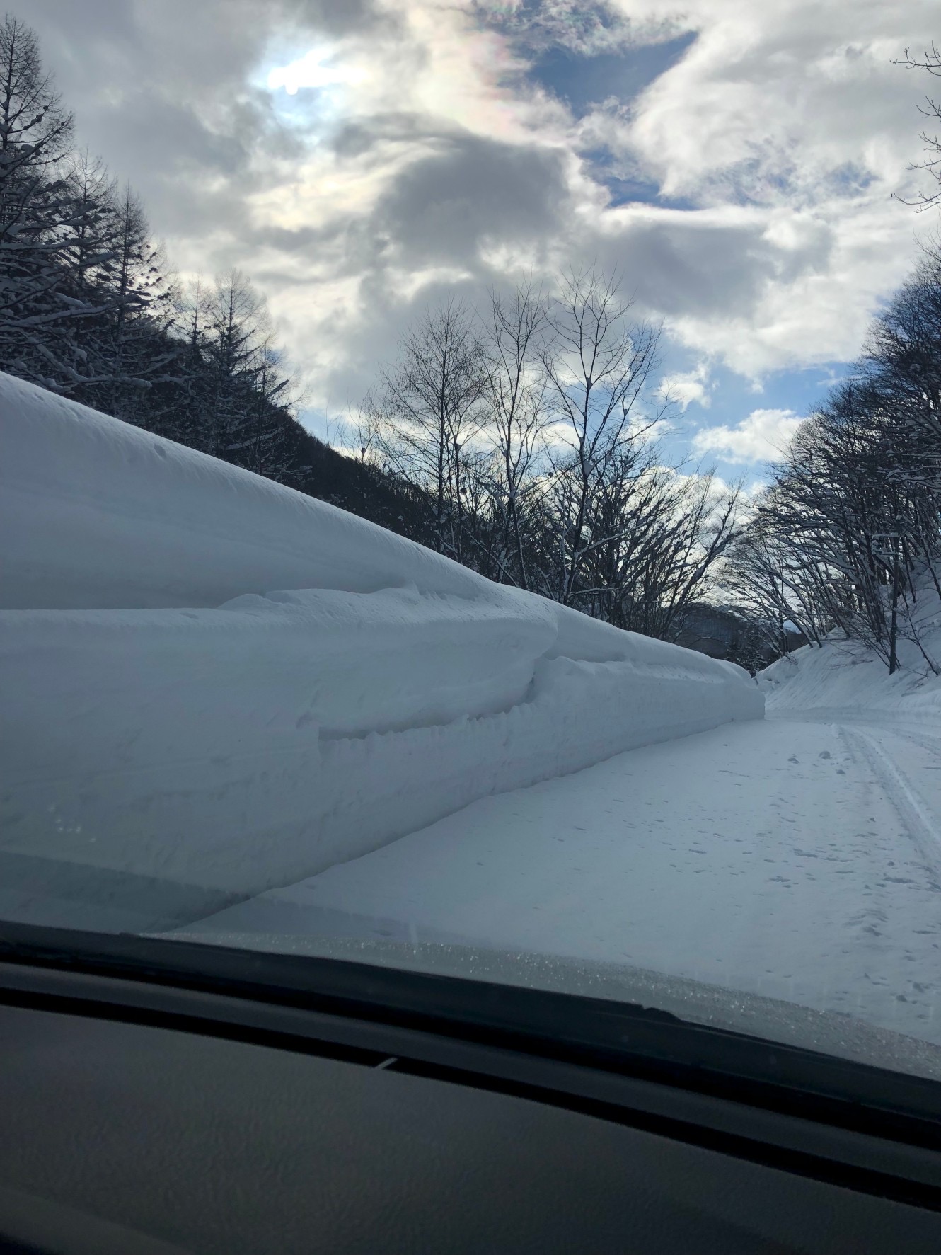 国道から一歩入ると、ところどころで雪の壁が出来上がっています。