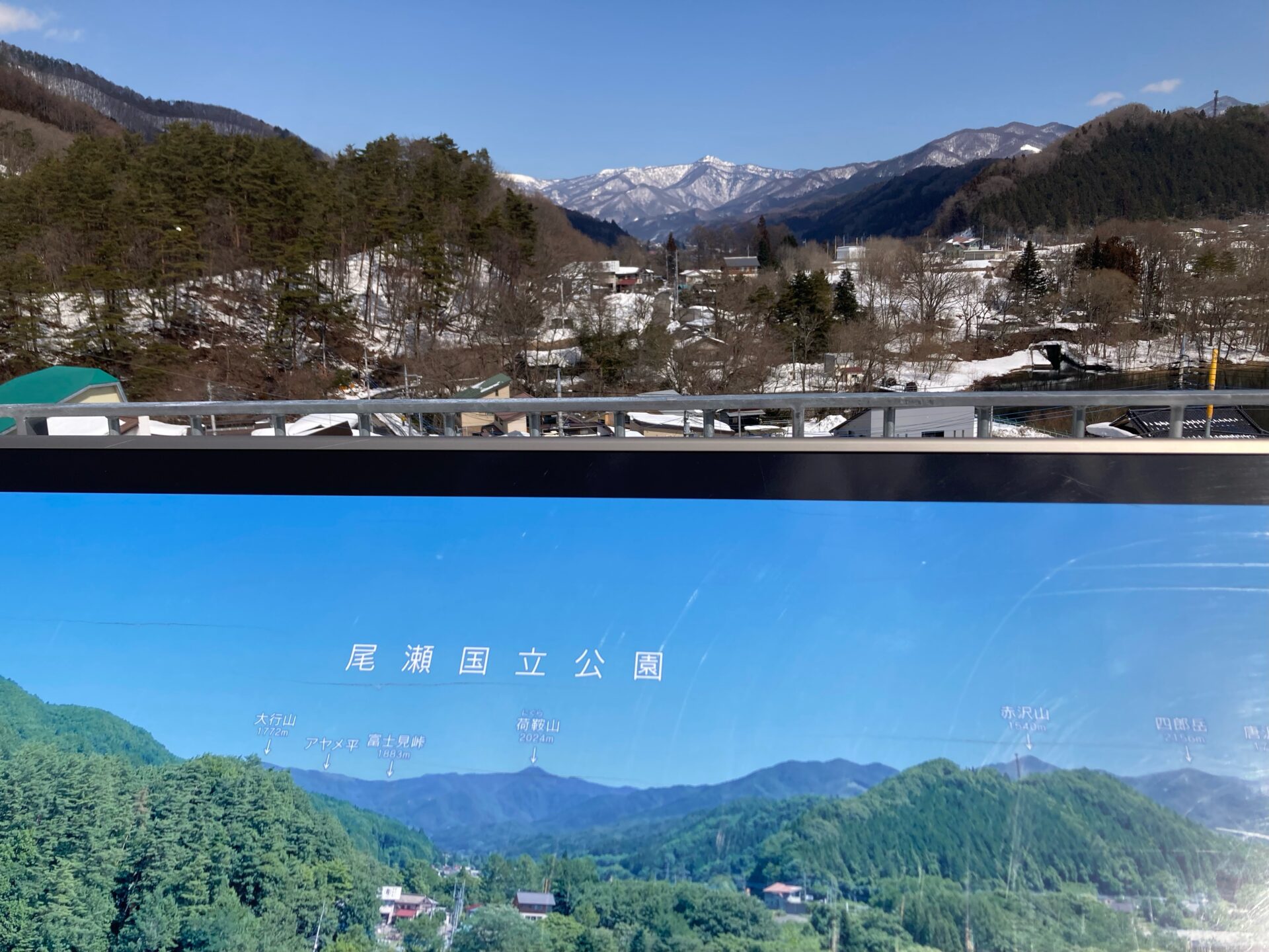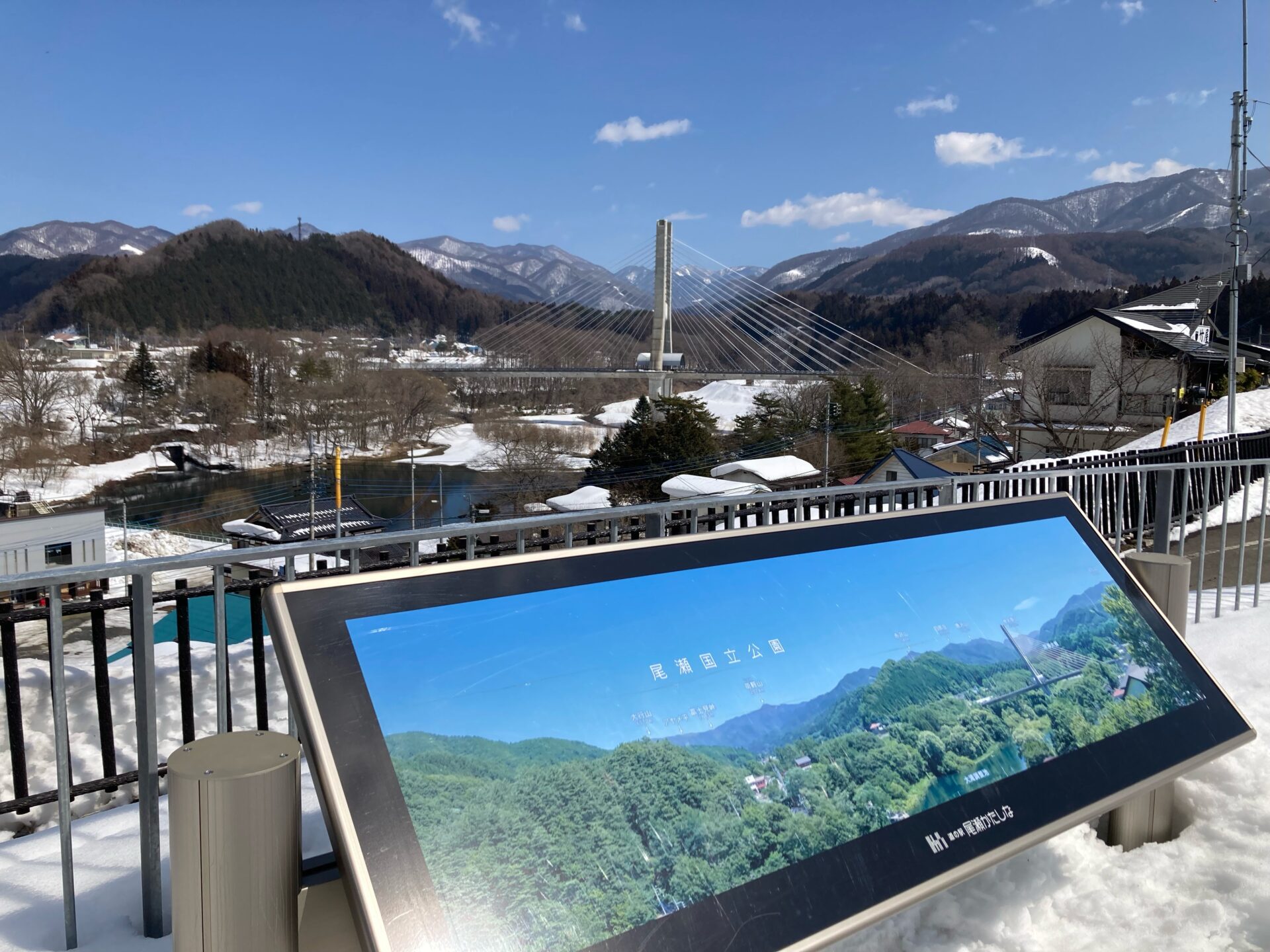 “道の駅尾瀬かたしな”にある展望テラスは、片品村のシンボルである水芭蕉の形をした「尾瀬大橋」と尾瀬国立公園「アヤメ平」が一望できる素敵な場所です。