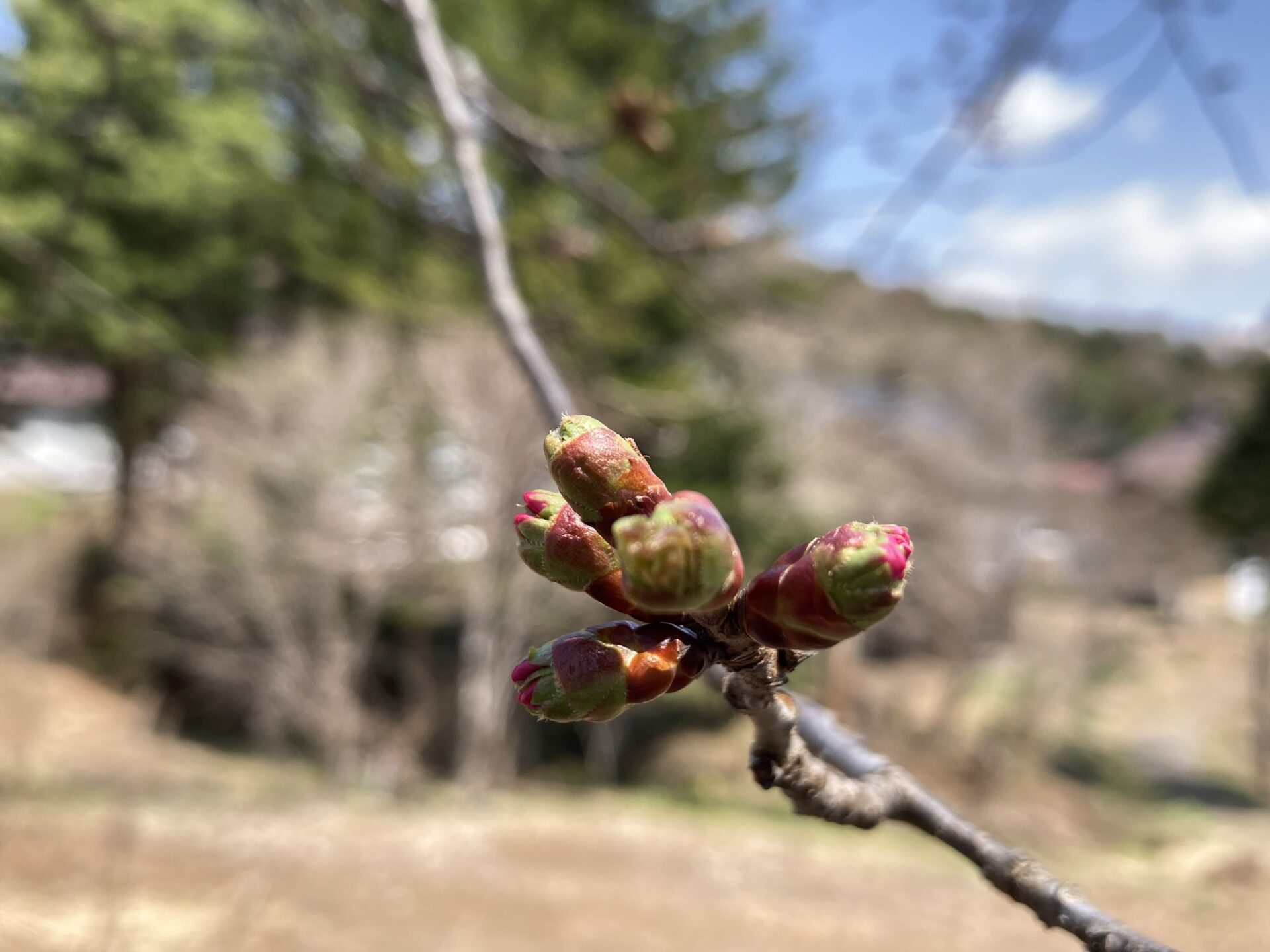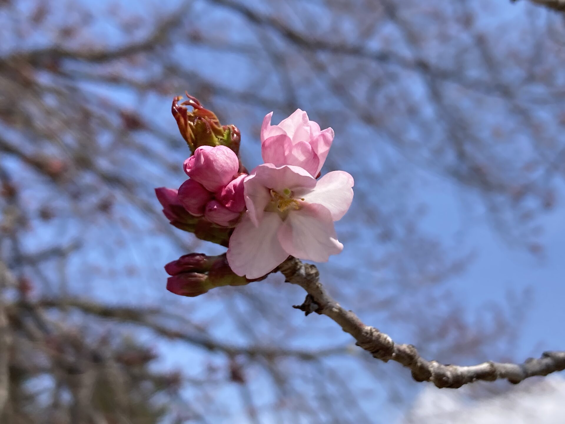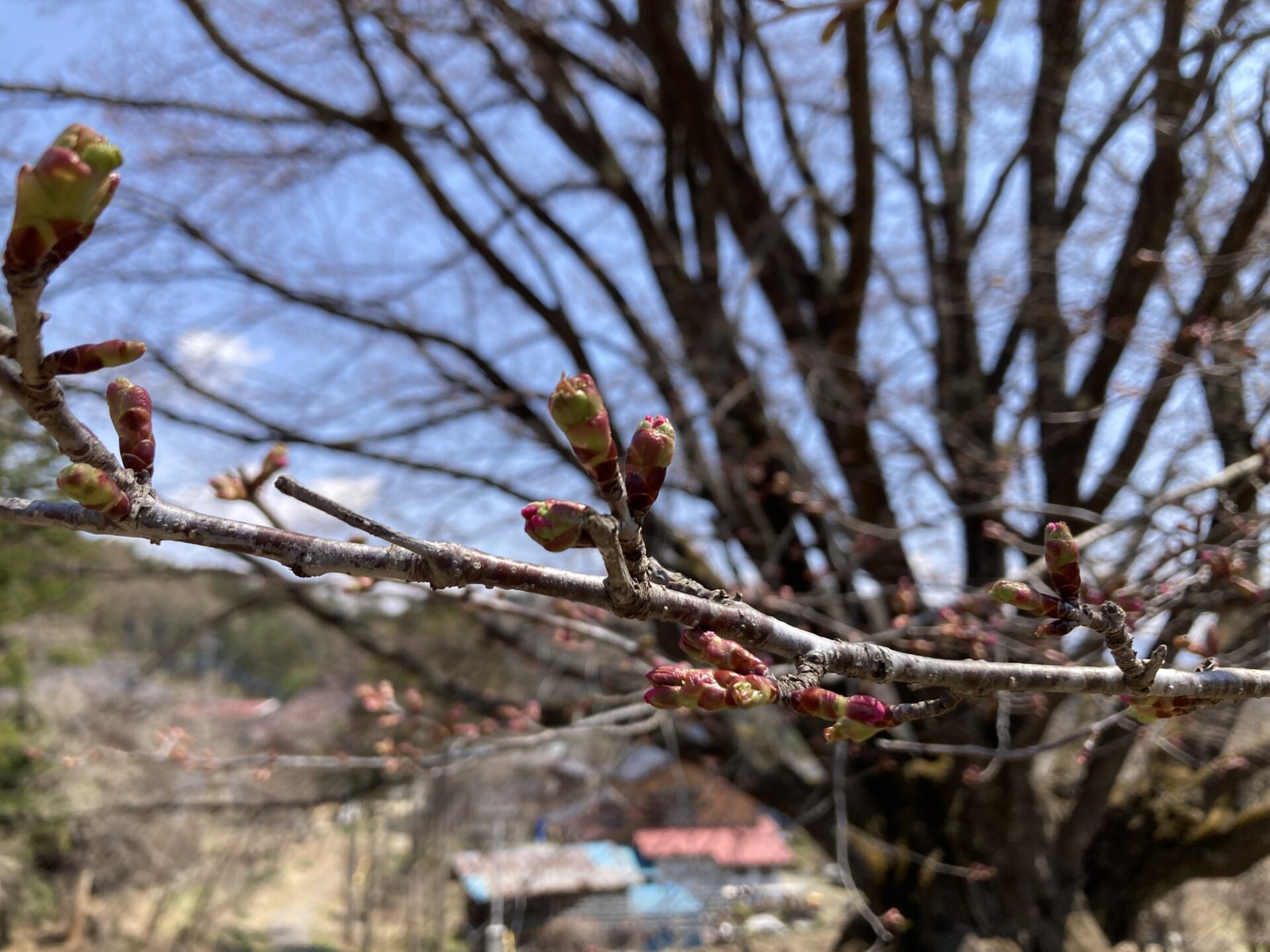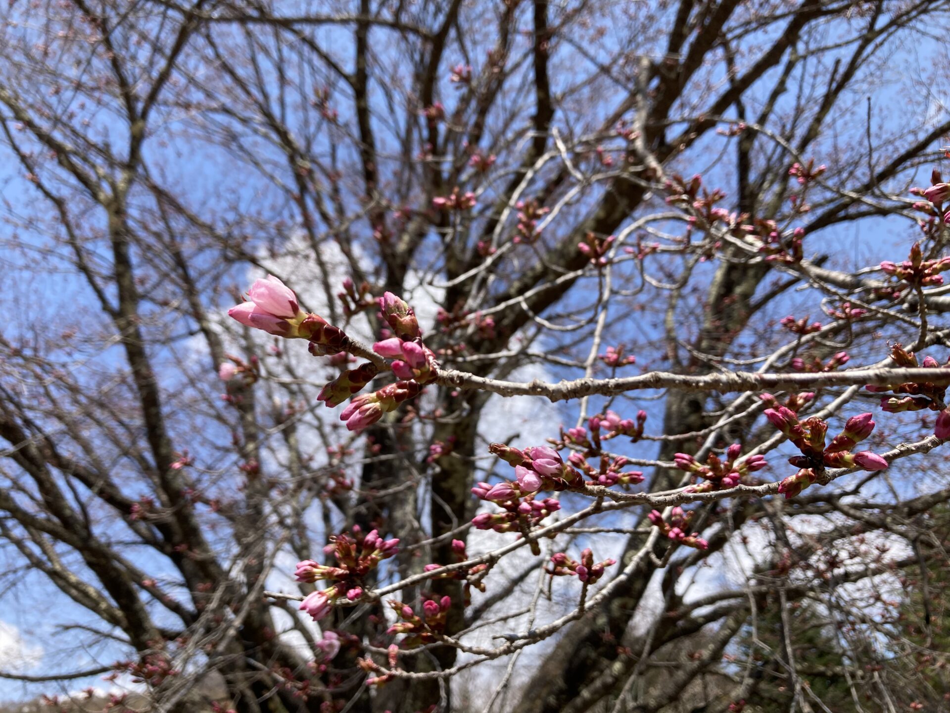 針山の天王桜ですが、全体的に色づきも濃くなり、陽の当たりの良い南側で4~5輪ほど開花いたしました!!