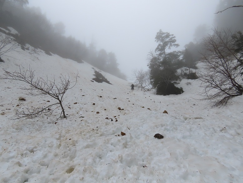 冬夏両道にトレースが付いていますが、冬道は特に落石に、積雪で木が道を塞いでいる箇所がある夏道は特に道迷いに要注意。