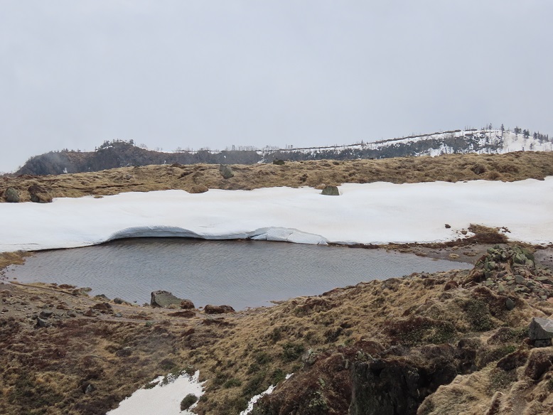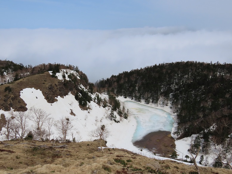 【雪解けの時期だけ出現する内輪火口湖】
