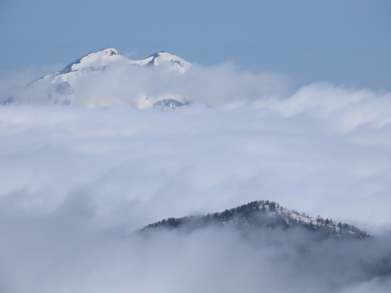 【雲海の隙間から見えた燧ヶ岳と燕巣山】
