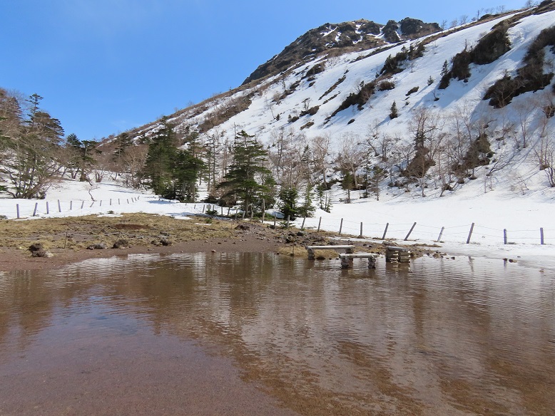 まだ残雪が多い日光白根山ですが急激な雪解けが進んでいます。