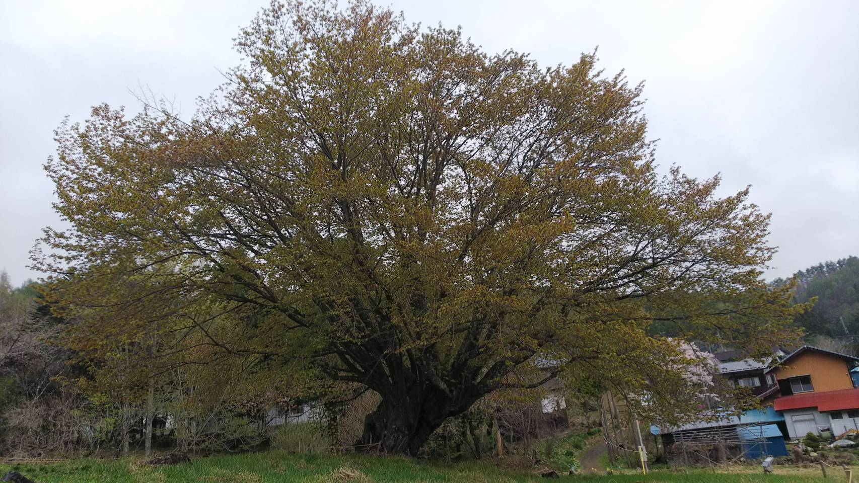 片品村の春を知らせる針山の天王桜も迫力を残したまま葉桜となりました。
