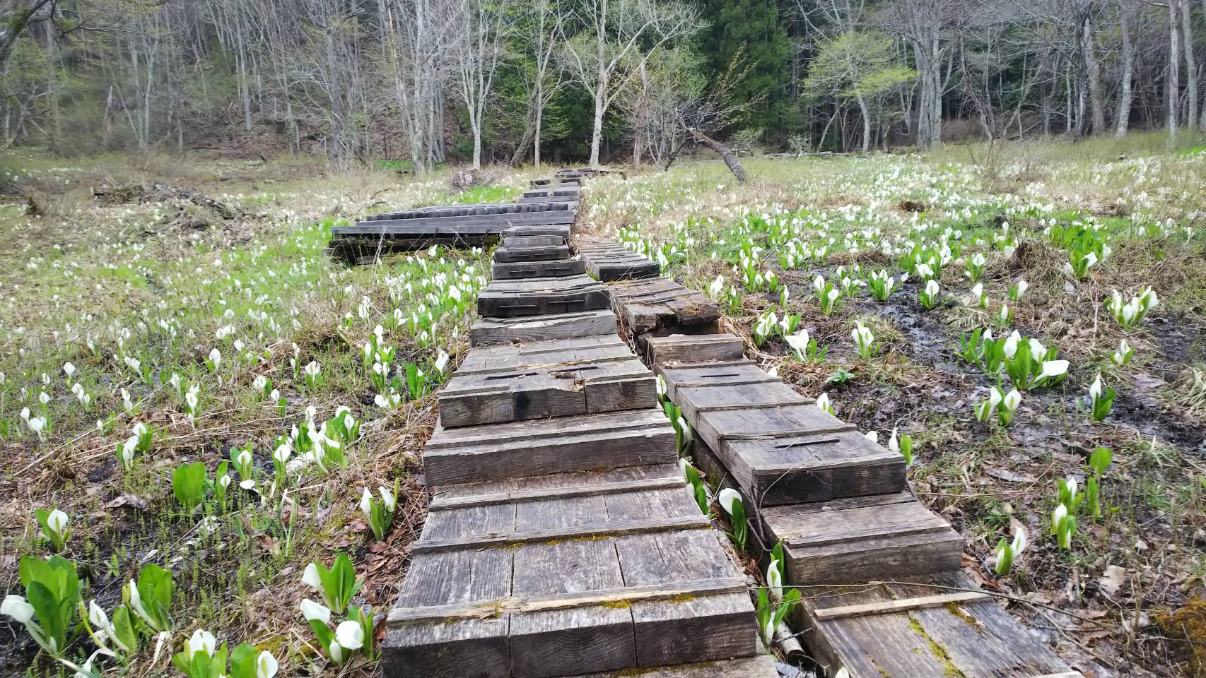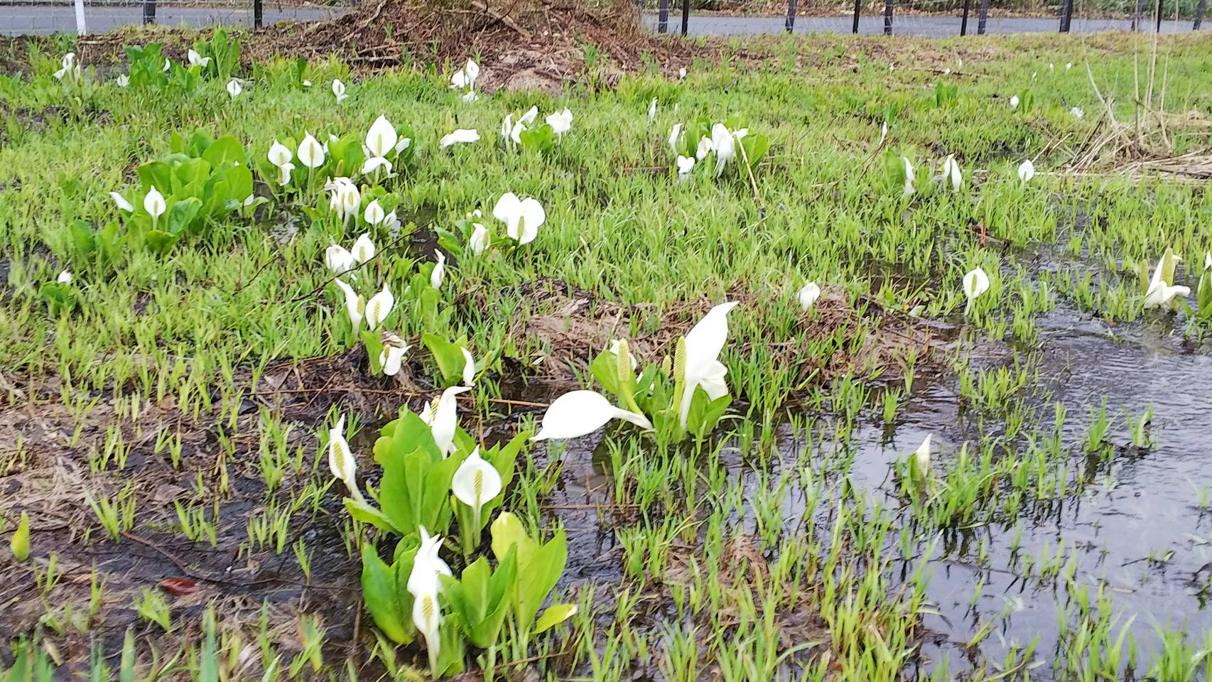 大清水湿原と越本水芭蕉の森の水芭蕉も大きくなりましたが、まだ小ぶりなものも見受けられました。