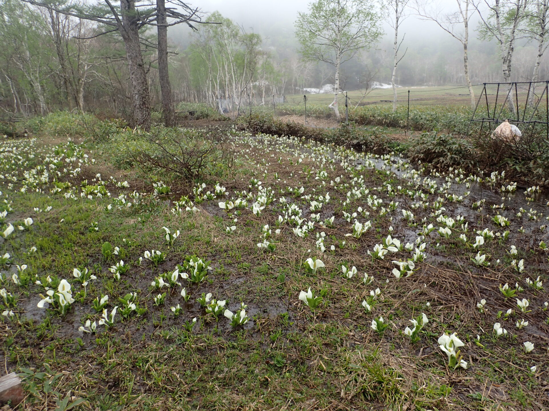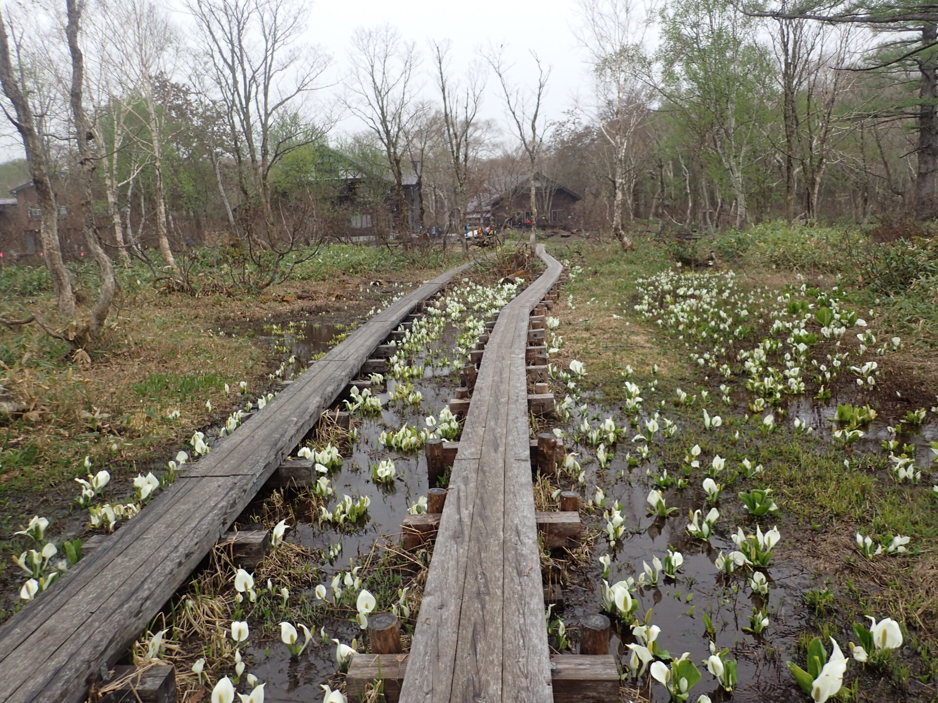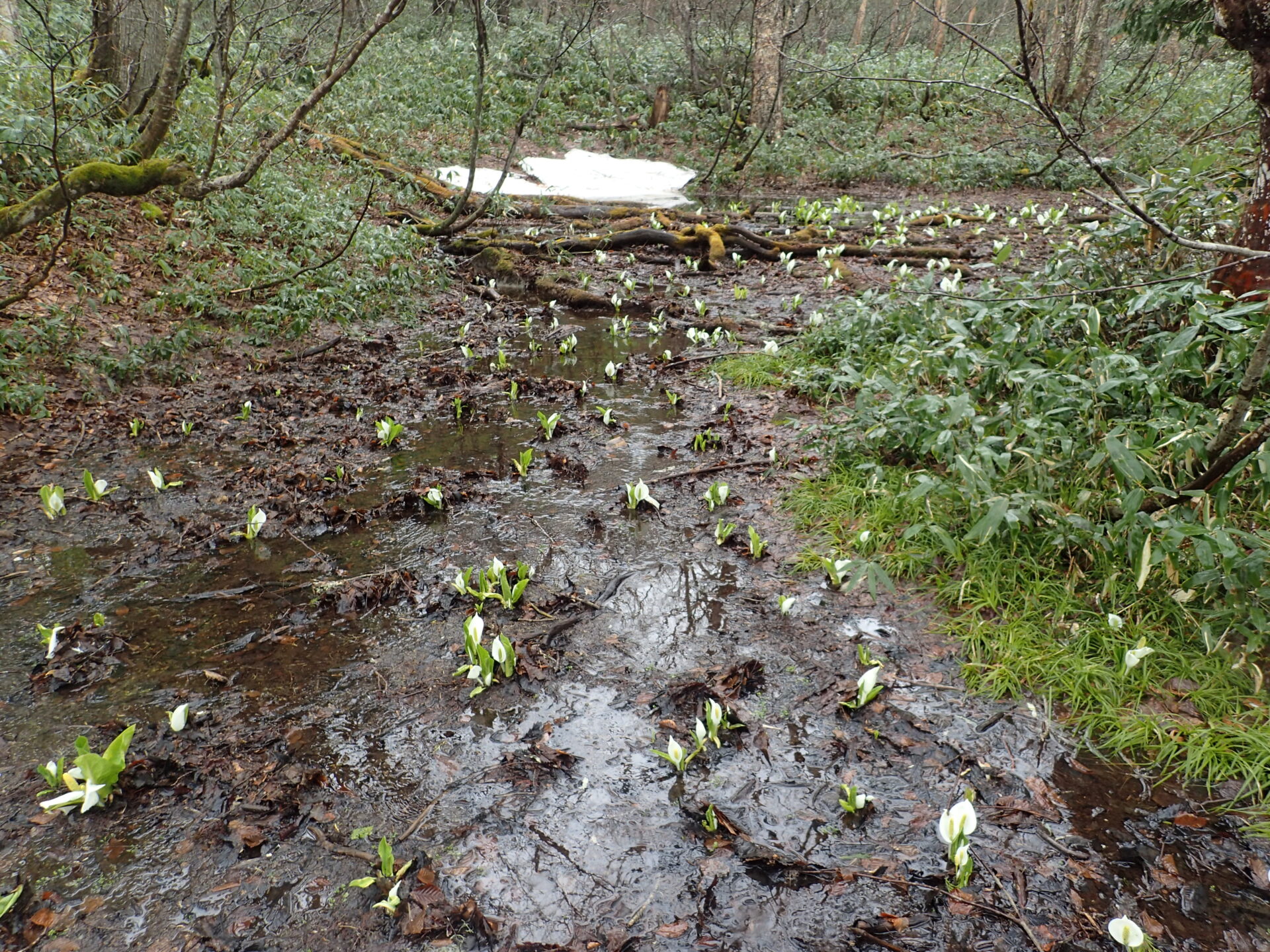 下の大堀や龍宮付近のミズバショウは見頃です。