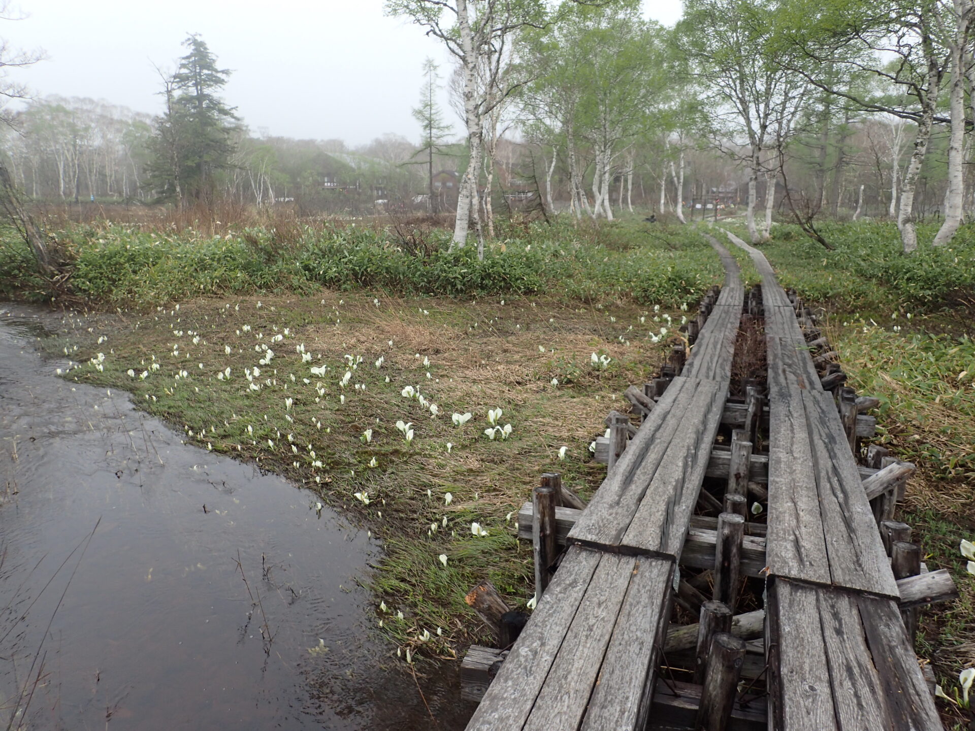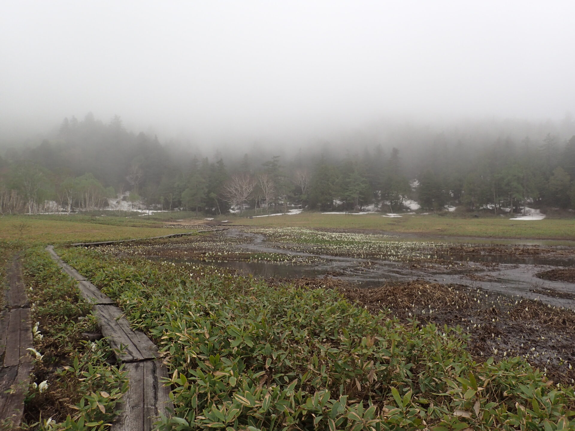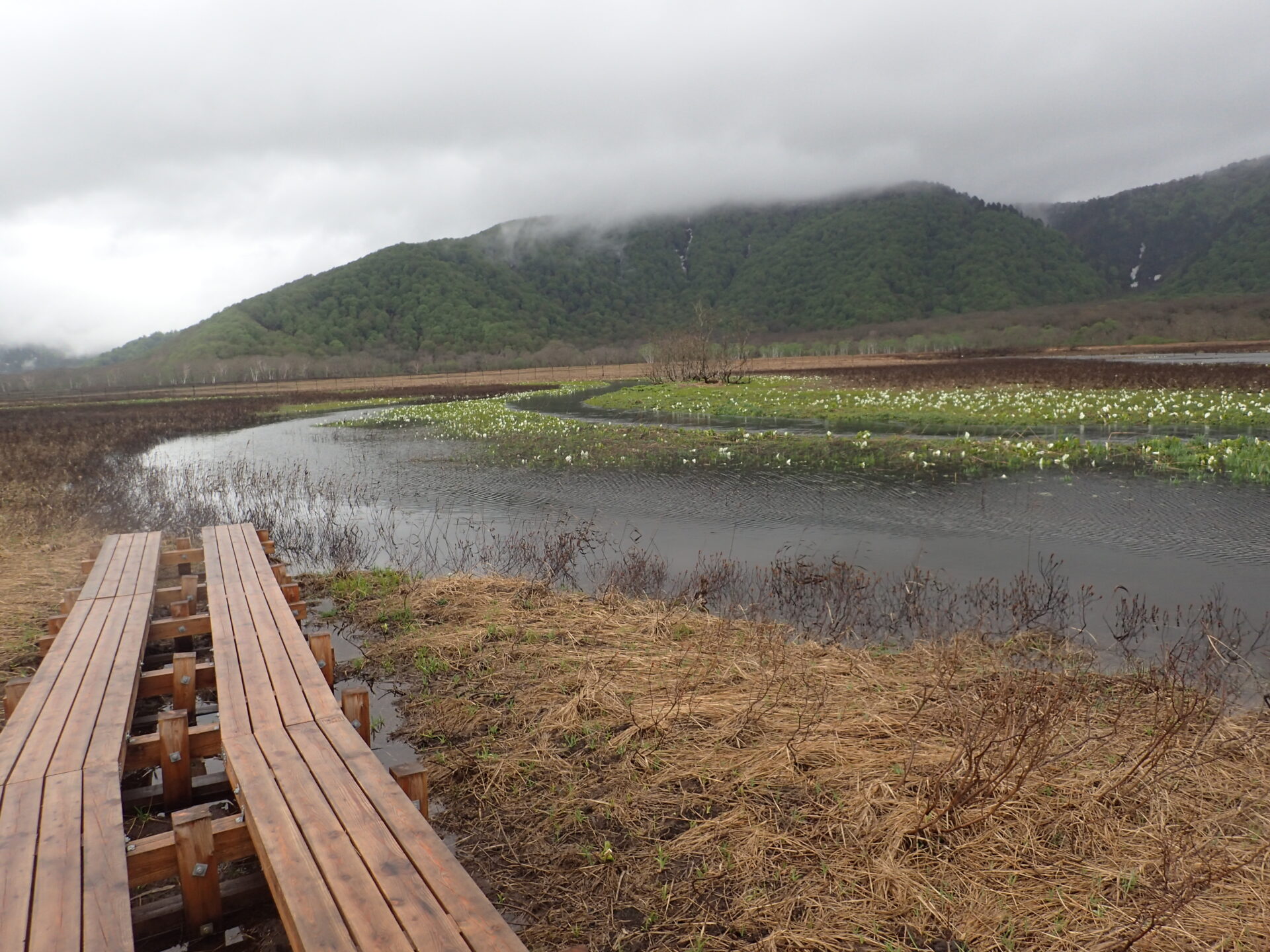 下の大堀や龍宮付近のミズバショウは見頃です。