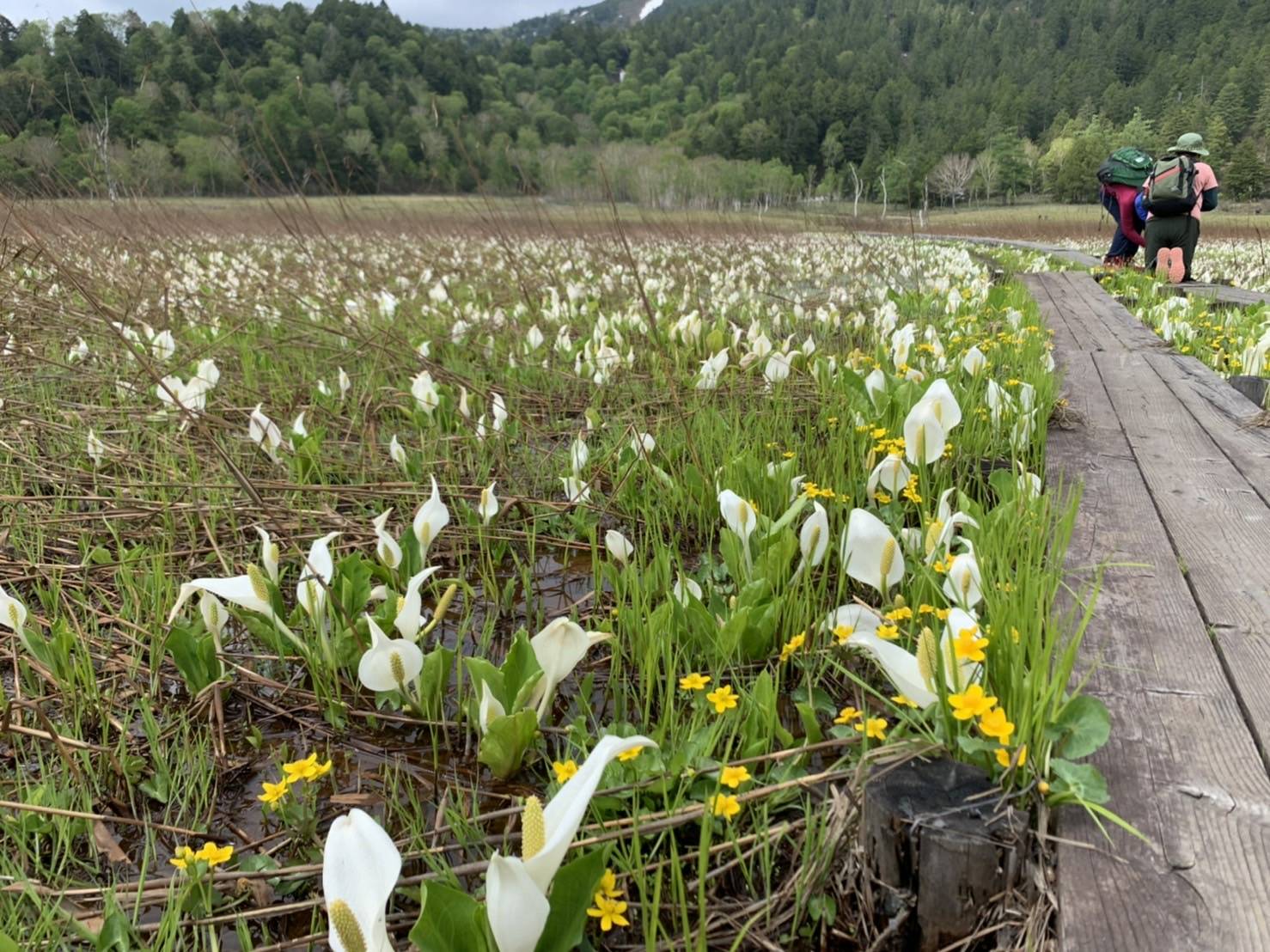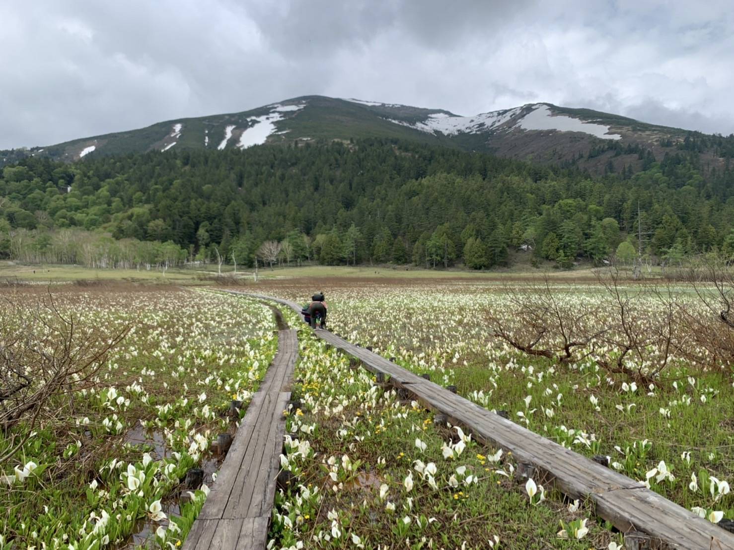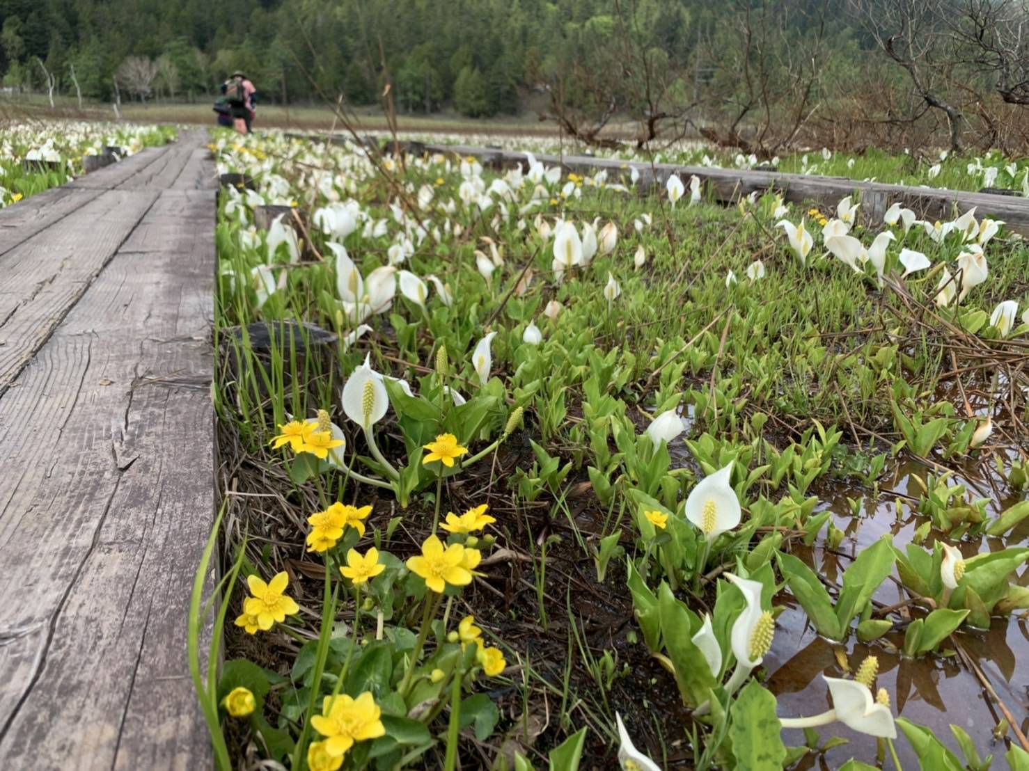 現在、山ノ鼻の研究見本園でミズバショウが見頃を迎えていますが、下ノ大堀方面のミズバショウはほぼ終わりに近いです。