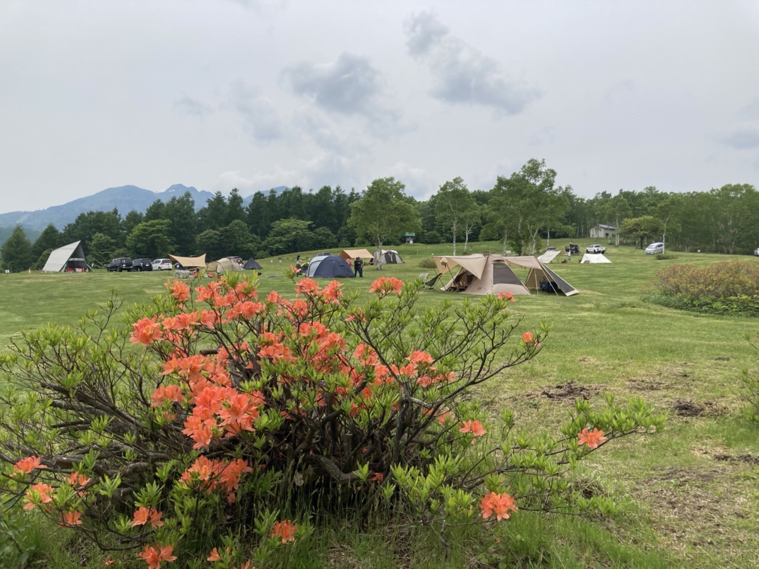 連日の暖かさで、片品ほたか牧場キャンプ場のレンゲツツジが見頃を迎えています!
