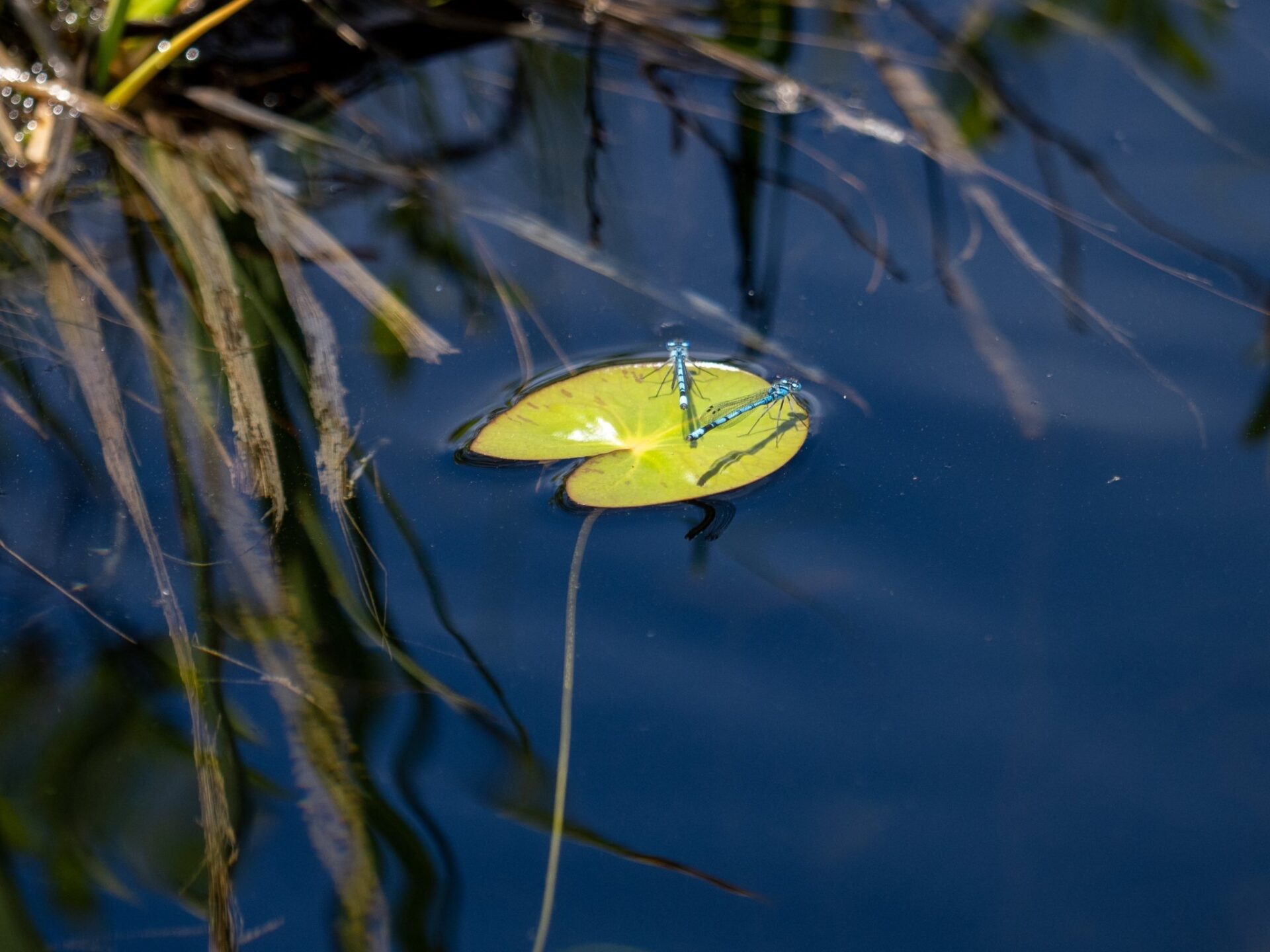 池溏(湿原にある小さな池)では、尾瀬の短い夏を知ってか、数多くのトンボたちが飛び交っています。