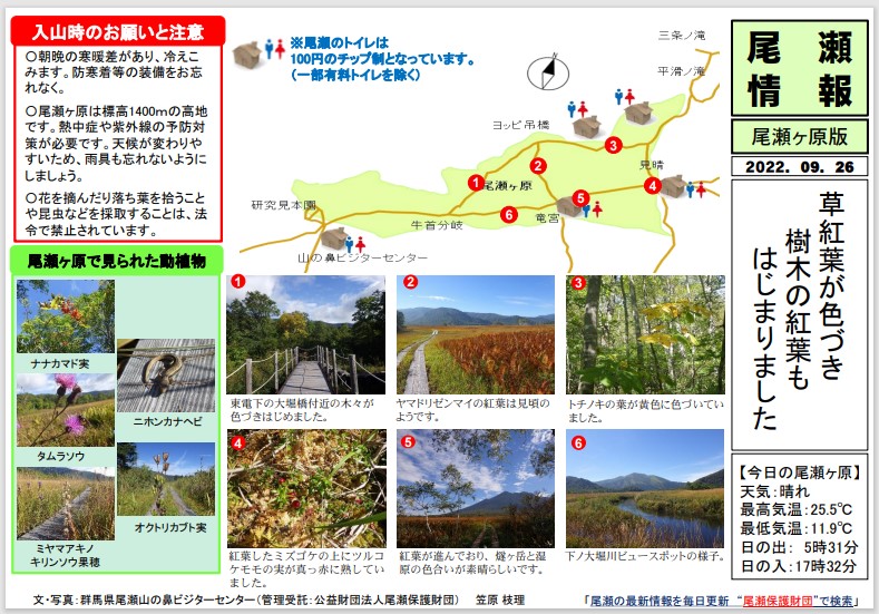 大江湿原より標高が高いので湿原の草紅葉の色づきが早いようです。
