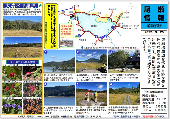 大清水平ではいつ訪れても静かな山歩きを楽しむ事ができ、百名山の燧ヶ岳を望めます。