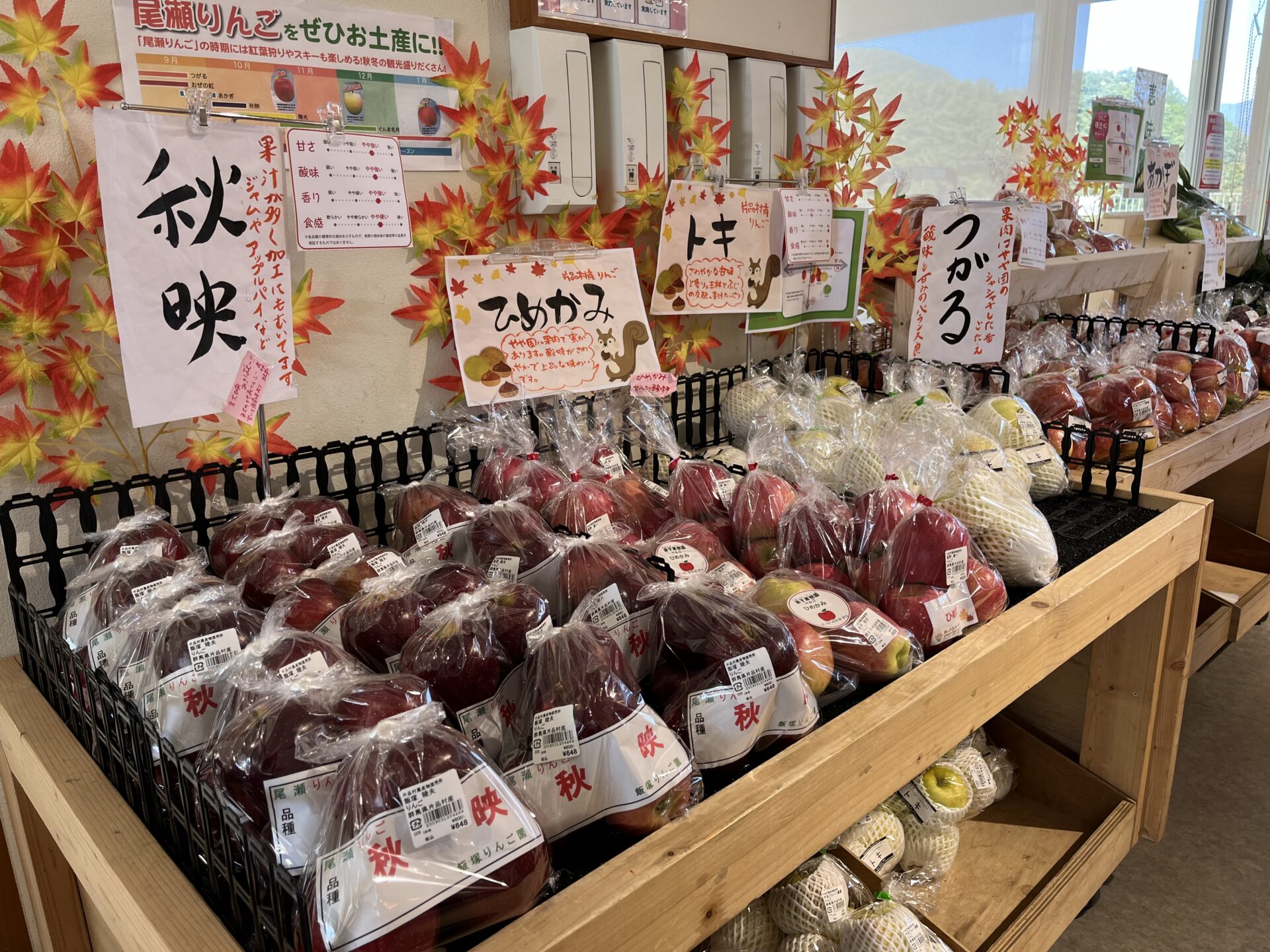 道の駅尾瀬かたしな「農産物かたしなや」では、今が旬の多種多様なリンゴが並んでいます。