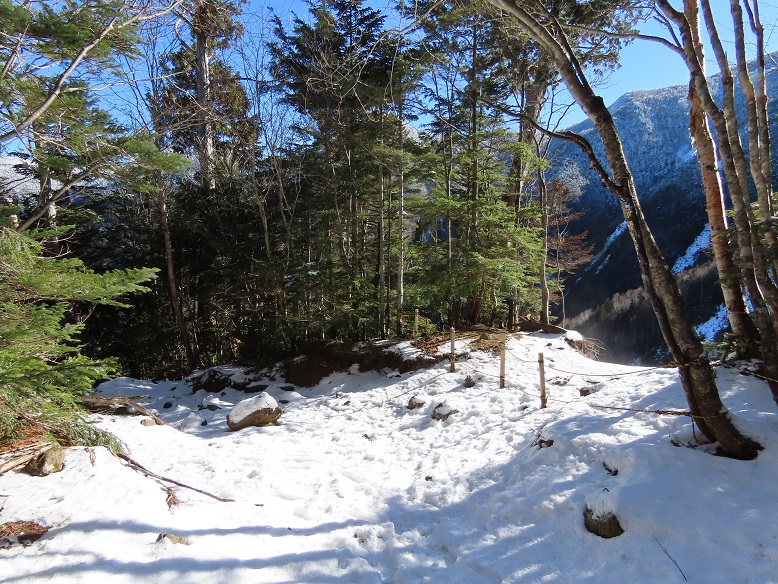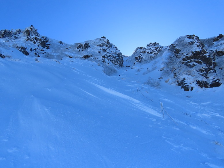 【山頂直下急北面路の積雪】