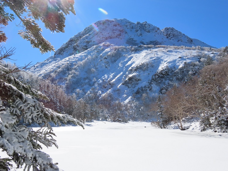 弥陀ヶ池だけでなく五色沼も凍結し厳冬様相。