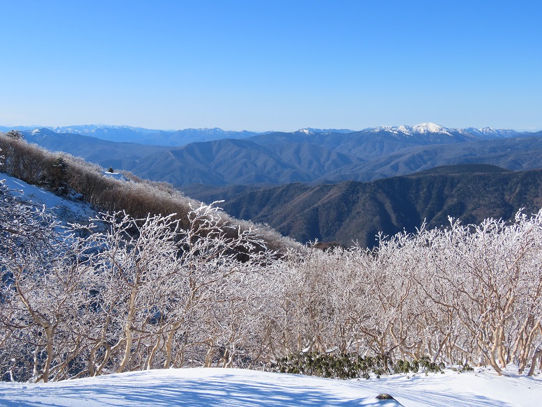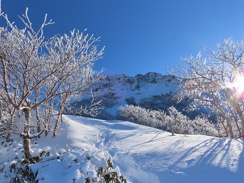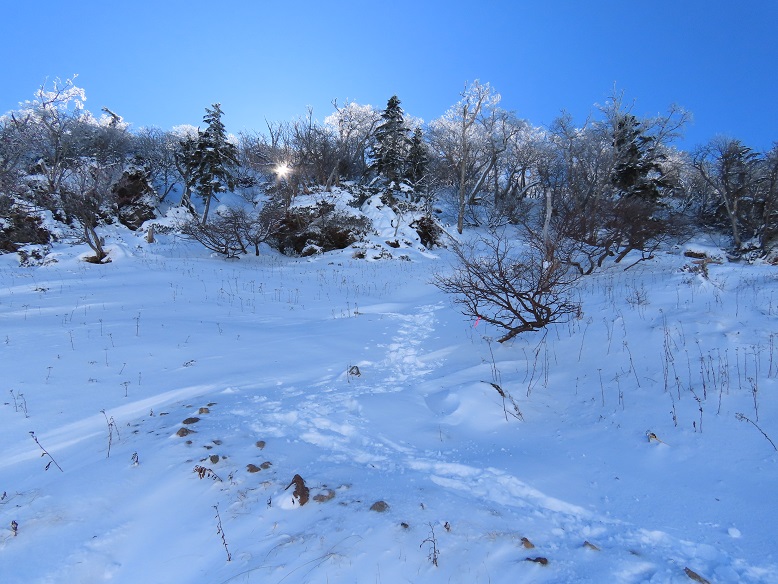 【弥陀ヶ池上部の緩い雪と霧氷】