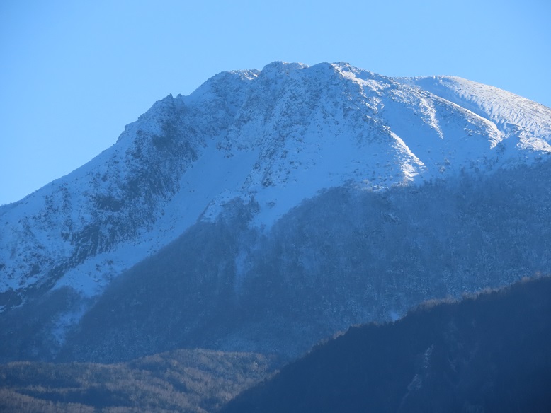 【凍結弥陀ヶ池よりの山頂】