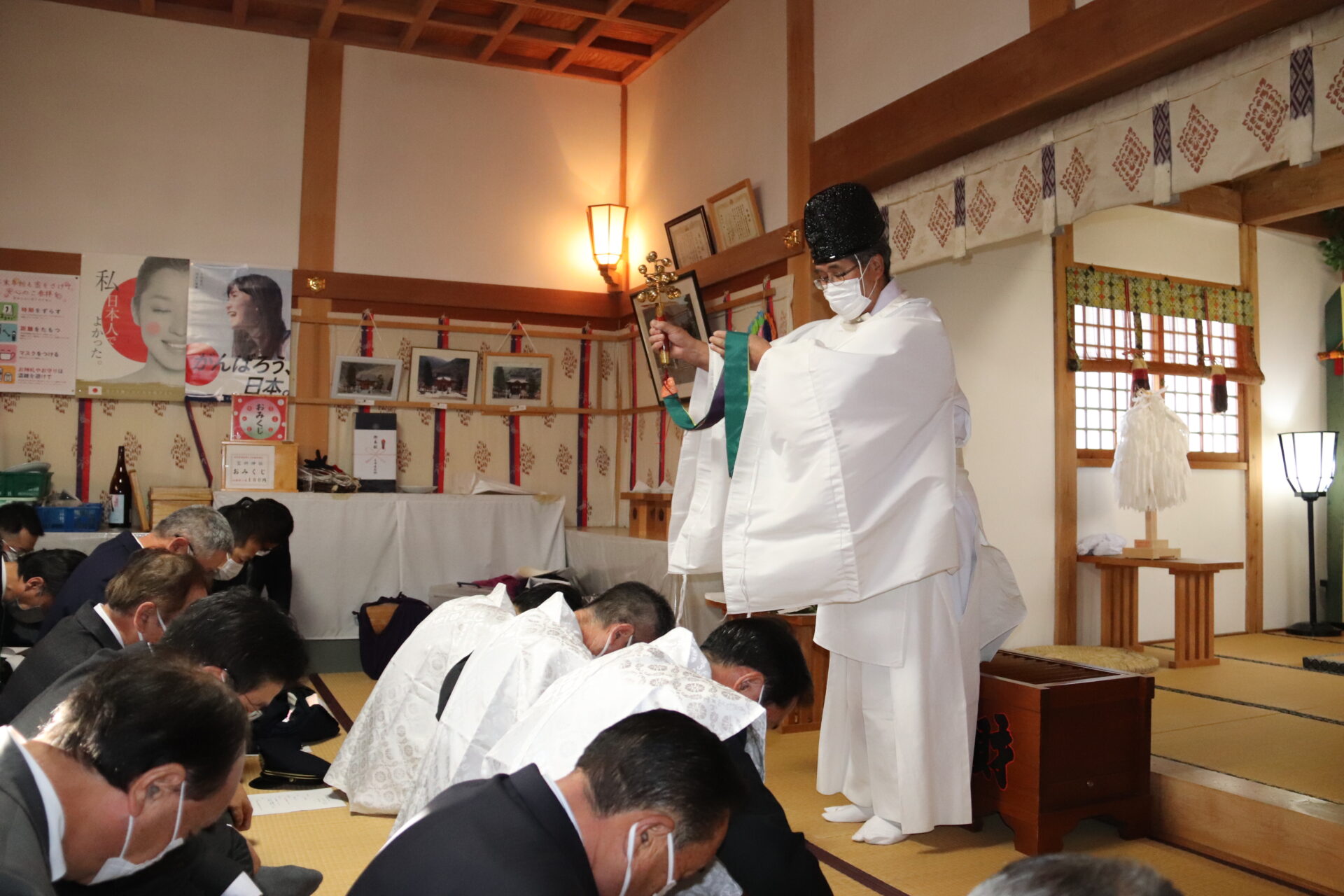 本日12月2日(金)チラチラと雪の舞う中、片品村鎌田「笠科神社」において今シーズンの降雪と安全を祈願し、片品村降雪安全祈願祭が執り行れました。