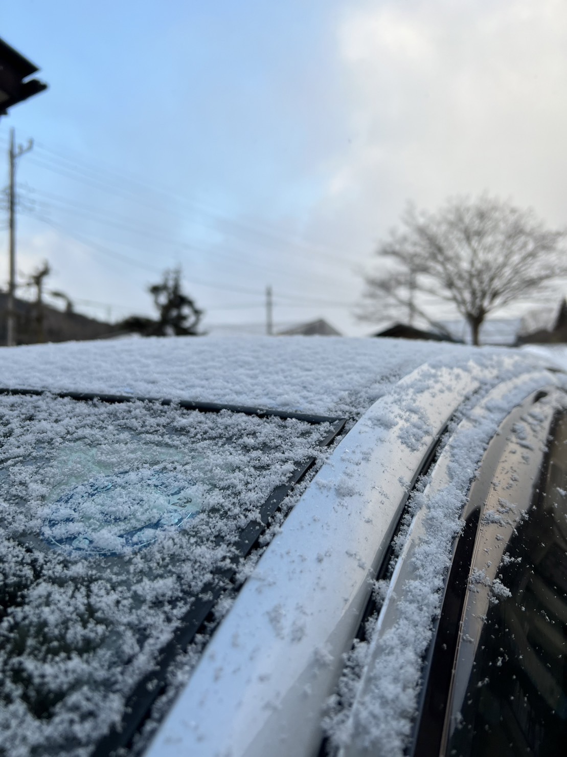 昨晩、冷え込み寒い夜でしたが、そのせいか今朝うっすらと雪が。